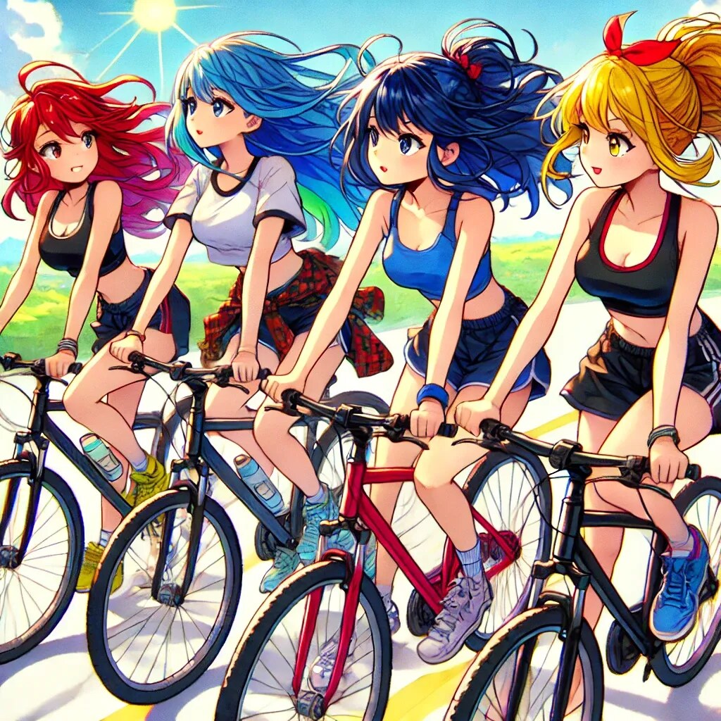 それぞれの髪色が鮮やかに映え、ランニングショーツの軽快さと、友情あふれる空気が感じられるシーンに仕上がっています。