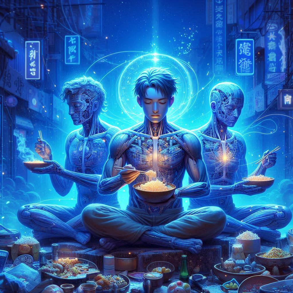 何故か有頭海老🦐と麺に浸かる人(?)が出てきました😅
