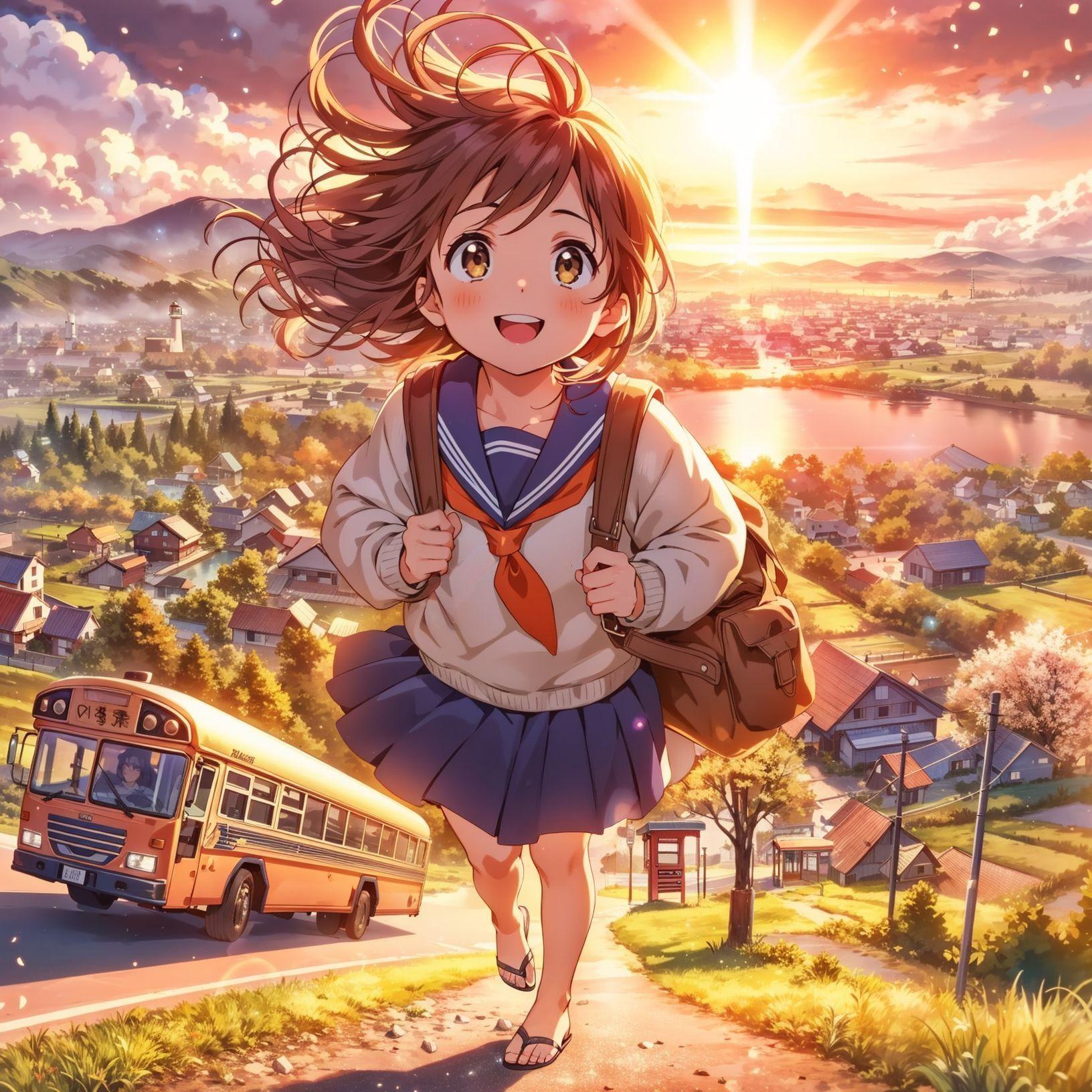 ひなたが一歩バスから足を踏み出すと、朝日がほんのりと彼女の頬を染め上げる。視線の先には、小さな家々が点在する風光明媚な町が広がっていた。ここは彼女の新しいページが始まる場所。ゆっくりと深呼吸をすると、桜の花びらがひらひらと空から舞い降りてきた。春の訪れを告げるかのように。