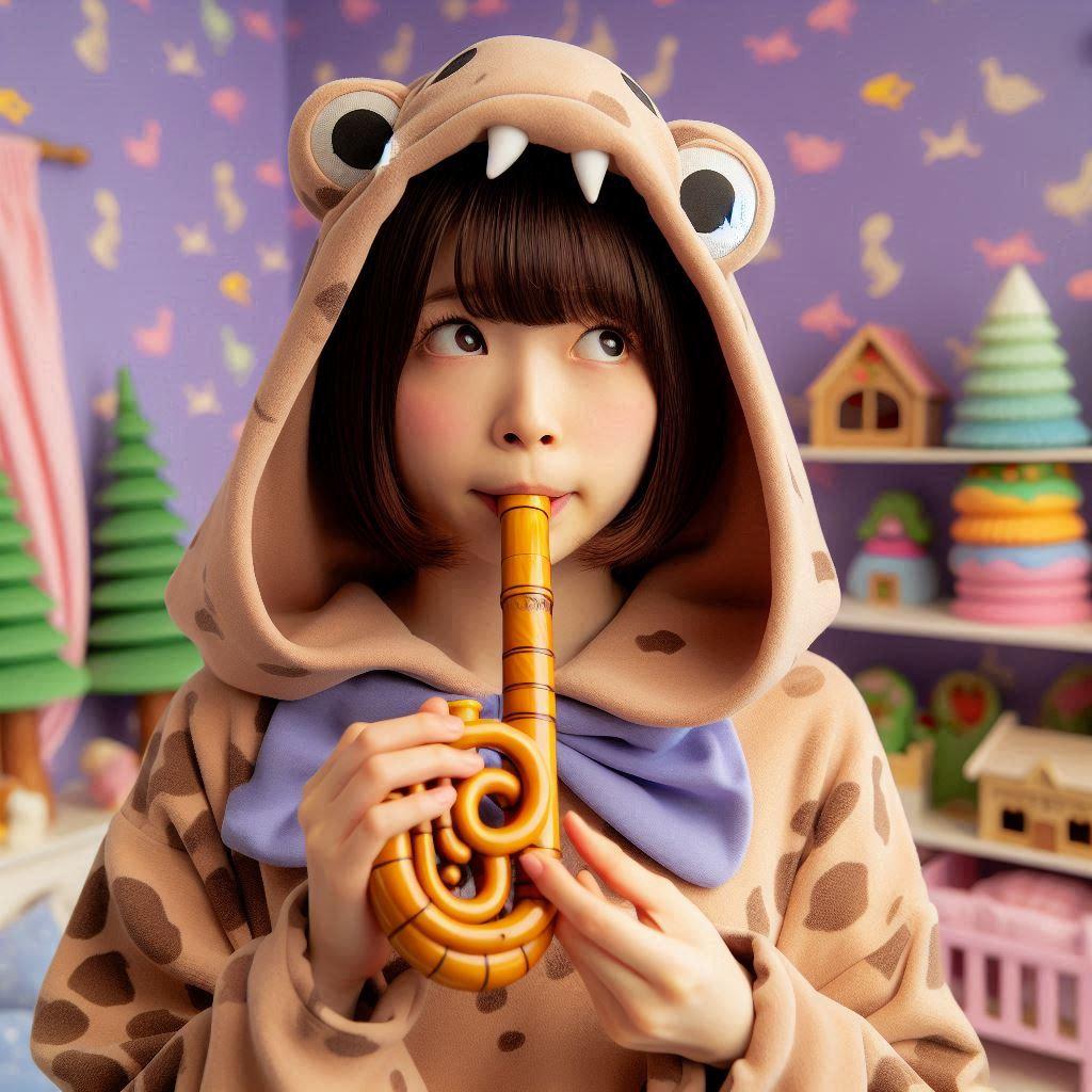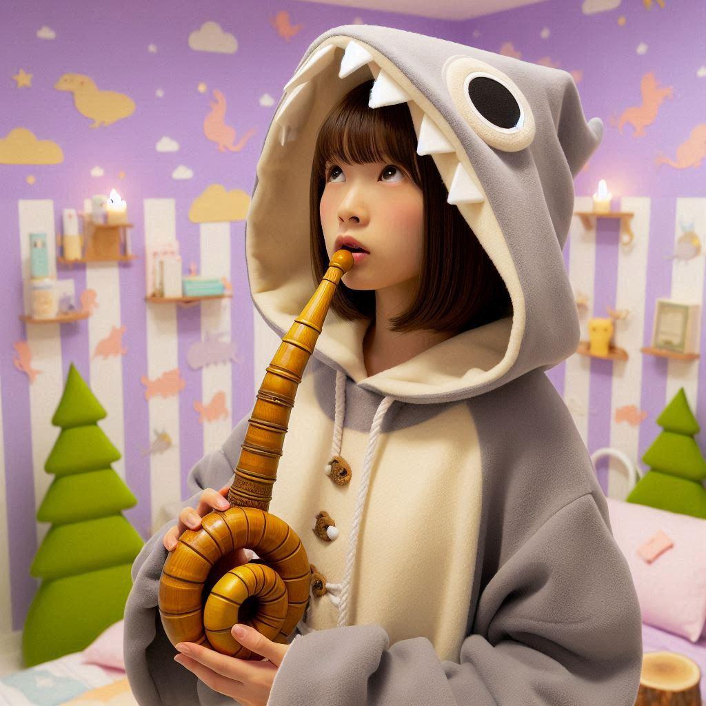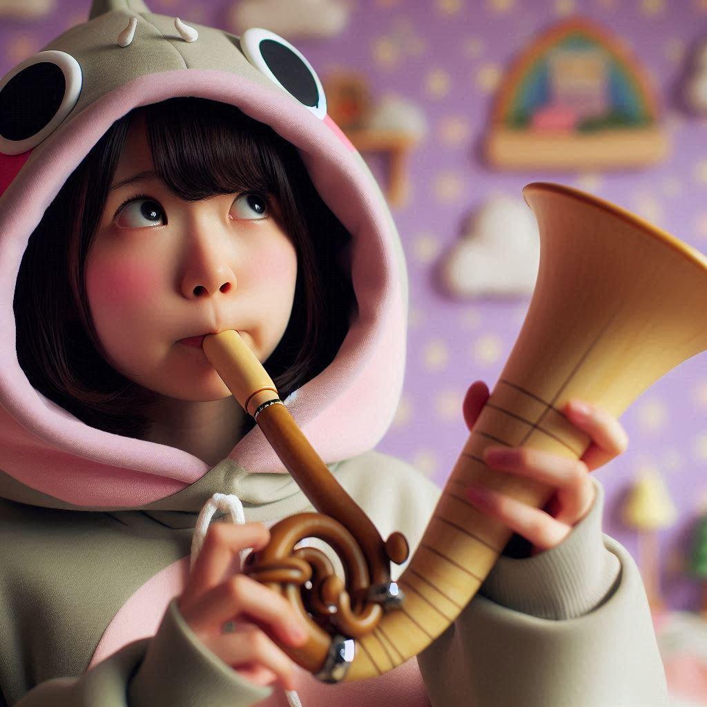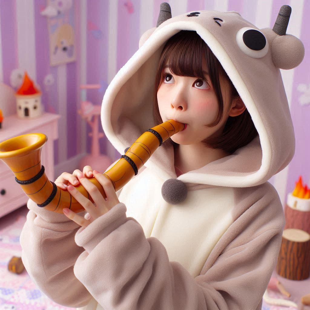 本当はアルファベットの「J」みたいなユニークな形をした楽器なのです。