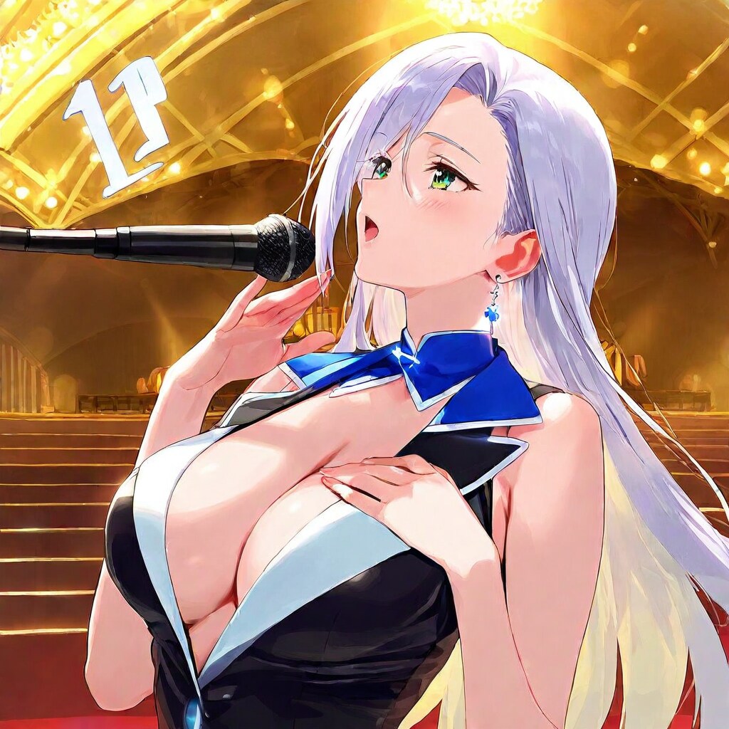 この銀髪美人歌手さんキャラは無料公開・使用可です!(カウントダウンライブじゃなくても、何かの音楽番組での歌唱中という一幕でも使えると思います)