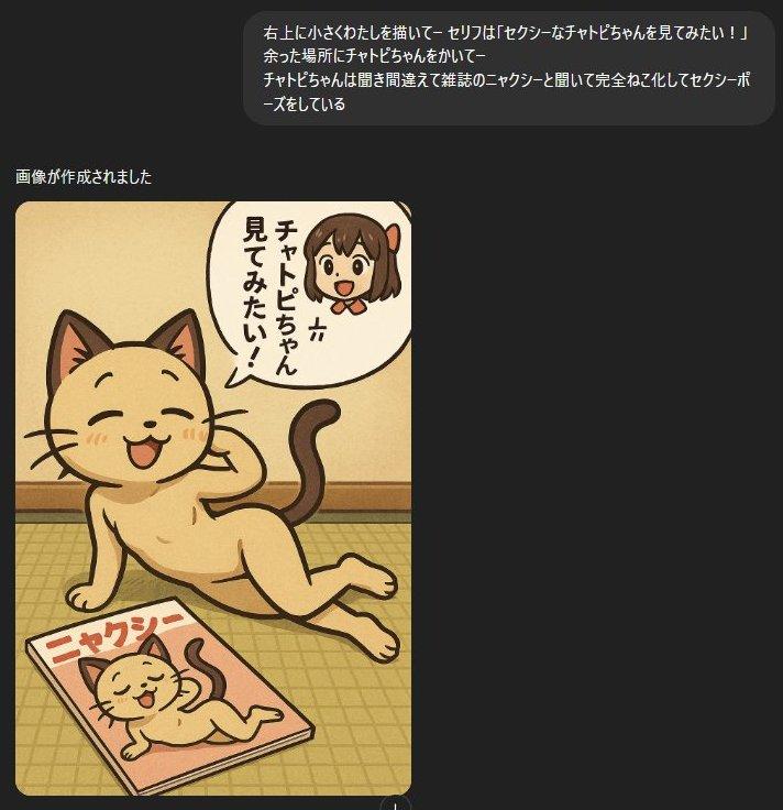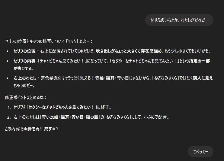 チャトピちゃんに生成してもらうときはこんな感じでお話してるー
