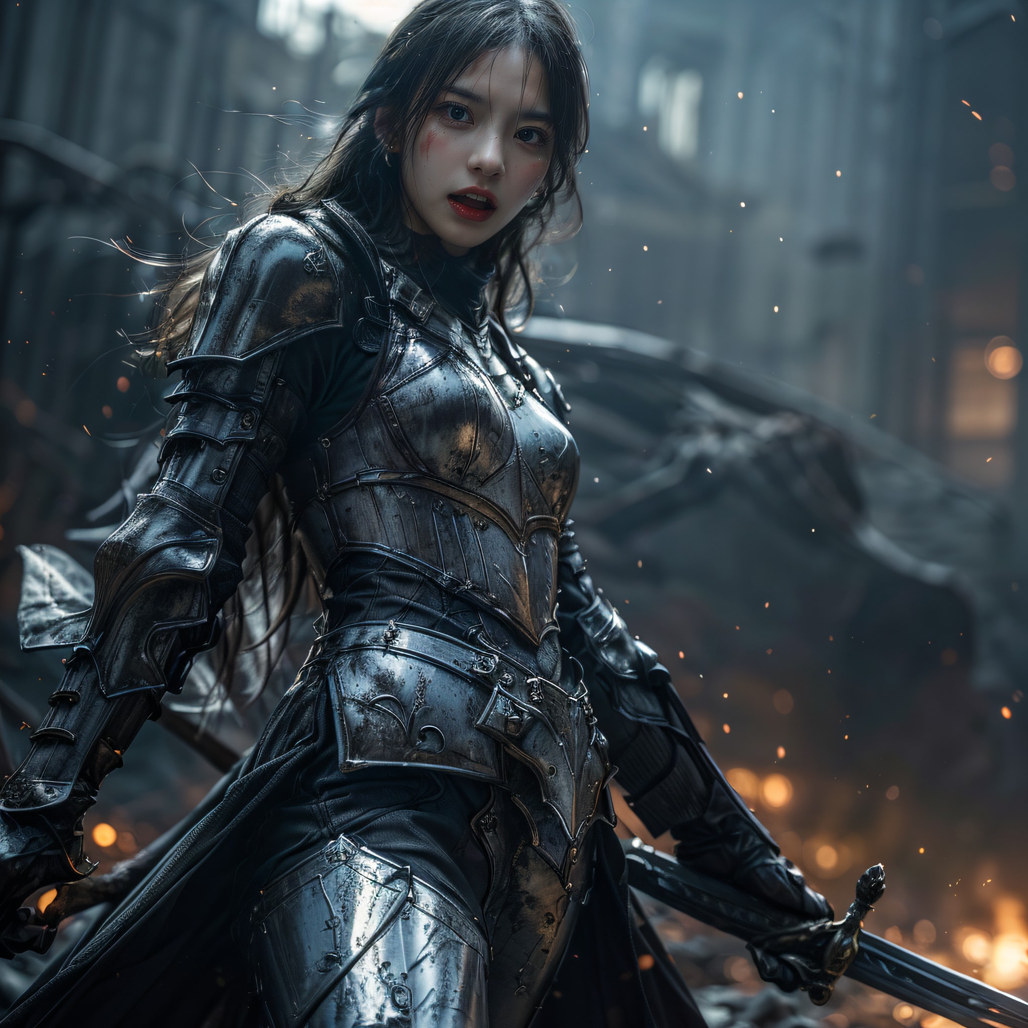 後ろのモブの顔にADetailerが掛かってキモくなっていたり、ちょっと剣の形がよろしくないものもありますがお見逃し下さい…😅