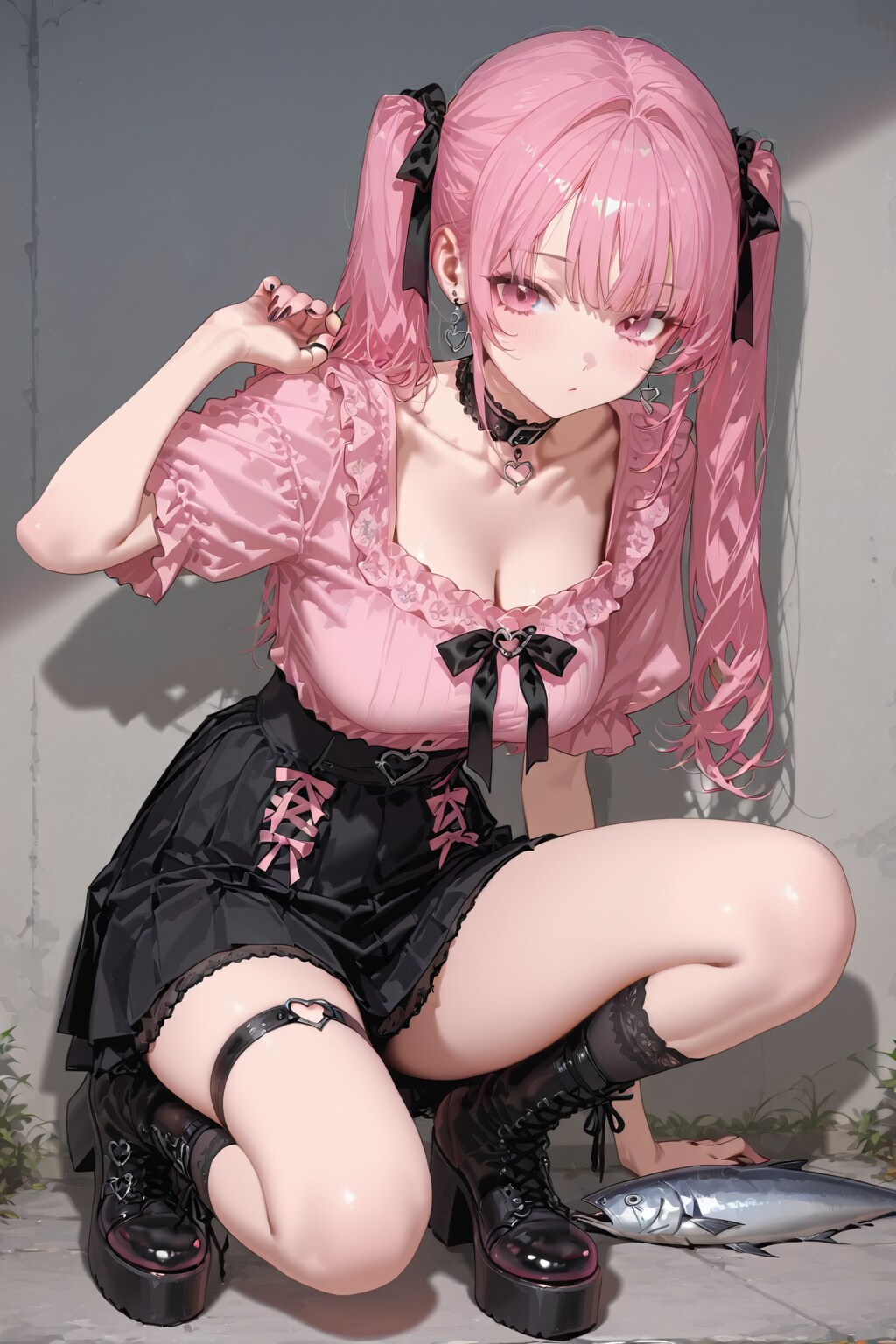 どら猫が咥えていたであろうお魚を見つけたおんなのこ。
