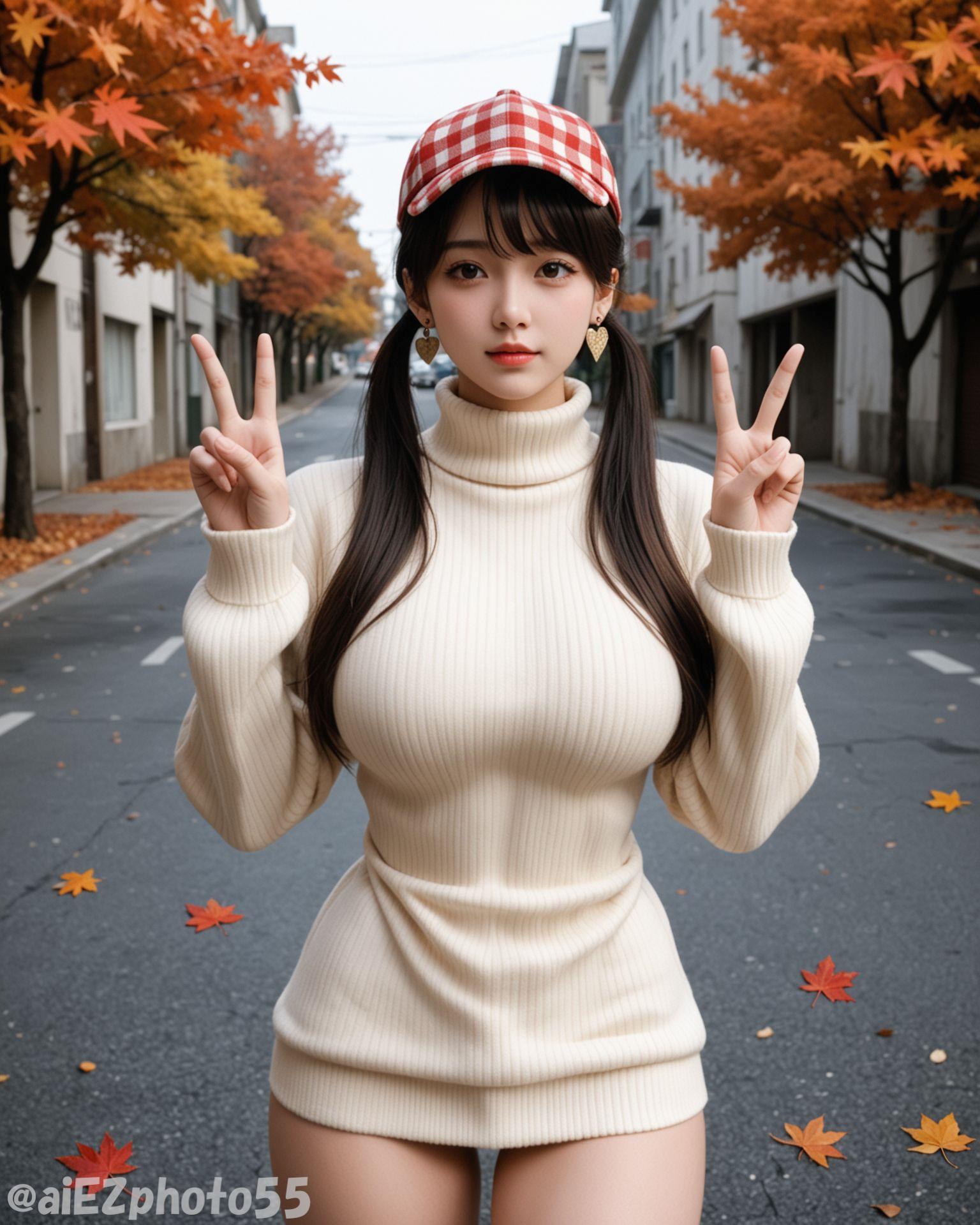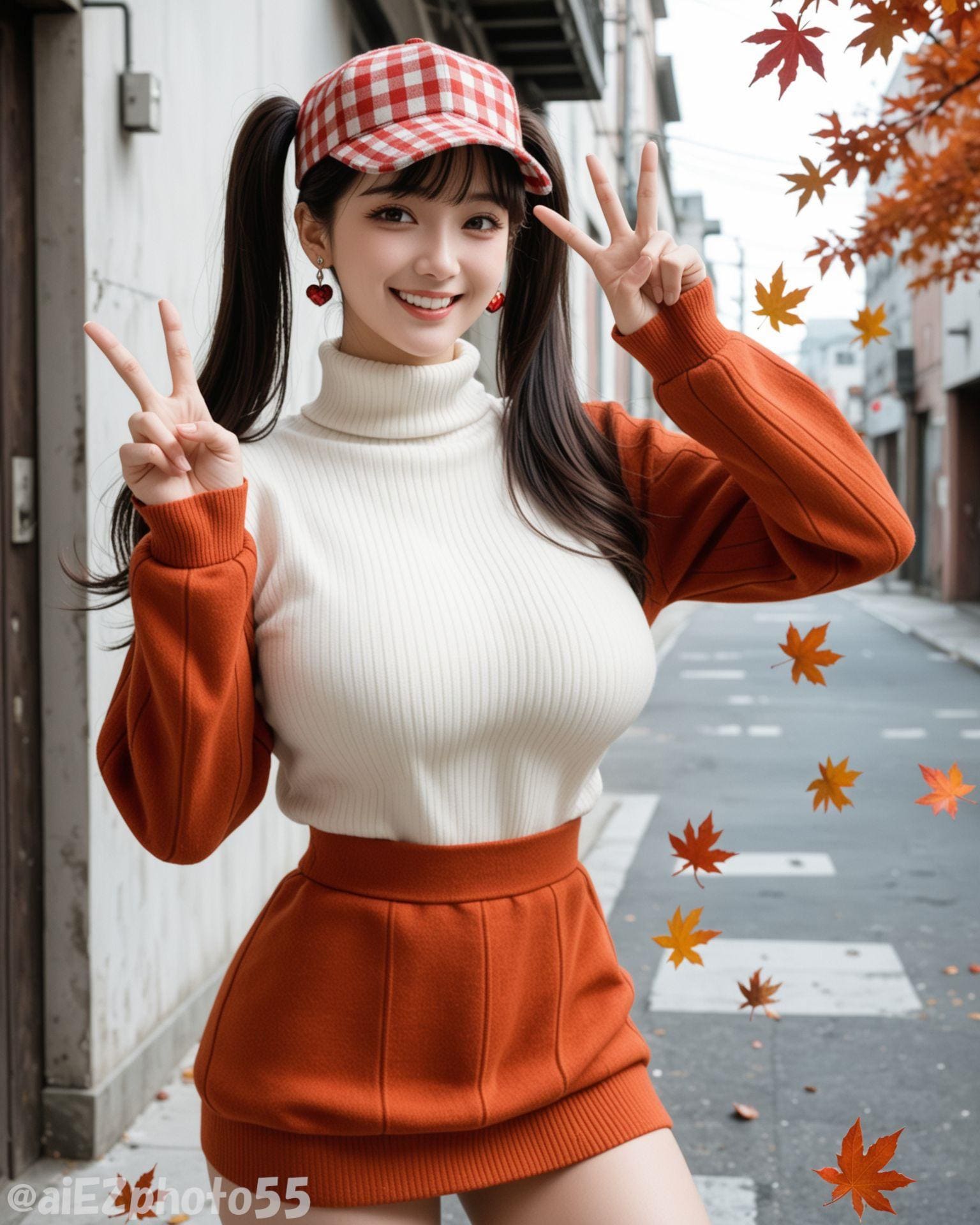 ということで、紅葉狩りをしている萌え袖お姉さんです笑