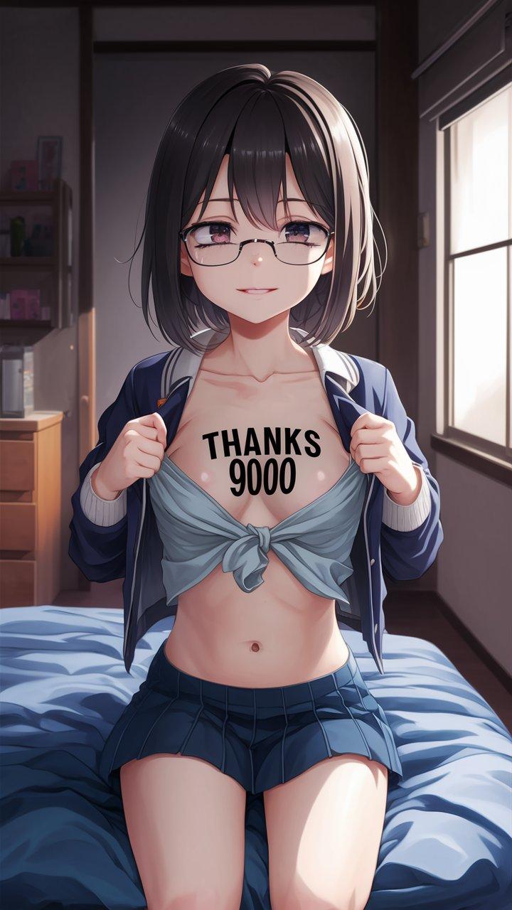 おまけとして2つほど(プロンプトは「towel with "9000 thanks" written wrapped her」など)