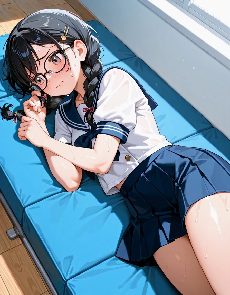 三つ編みメガネセーラー服の、お姉やん