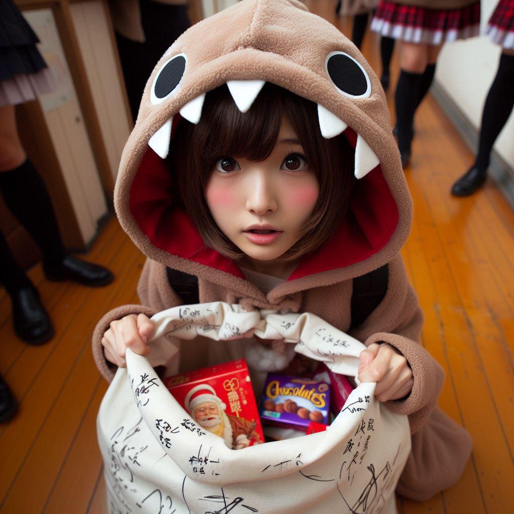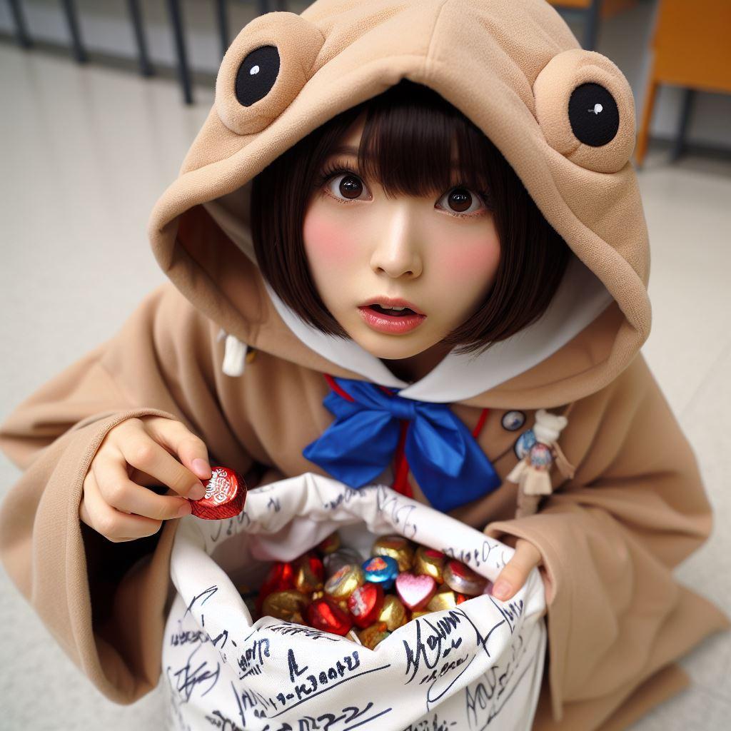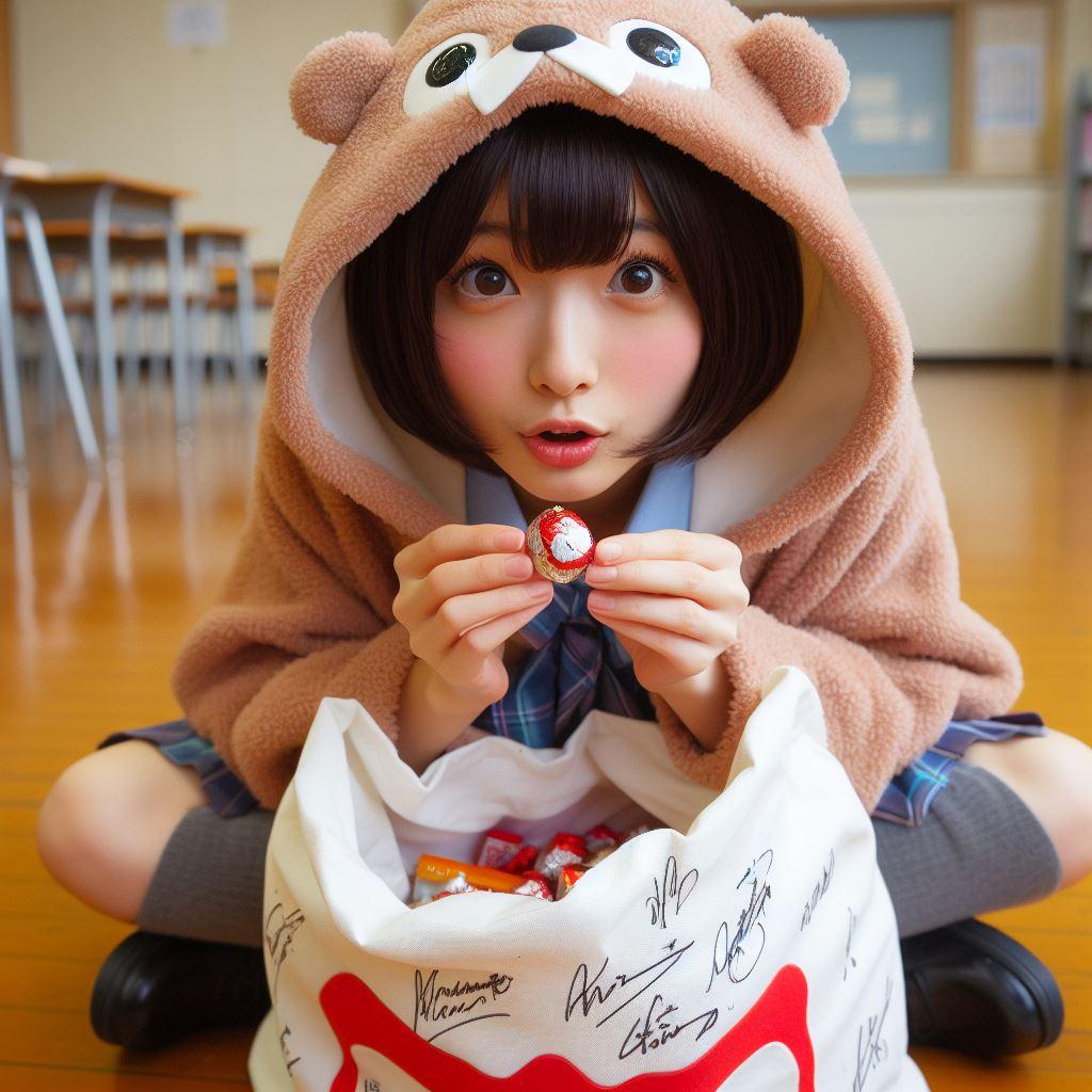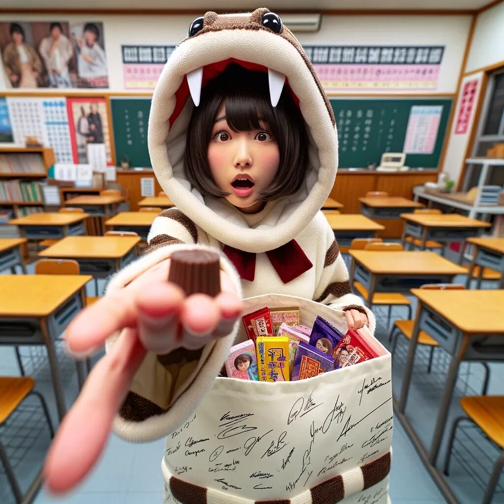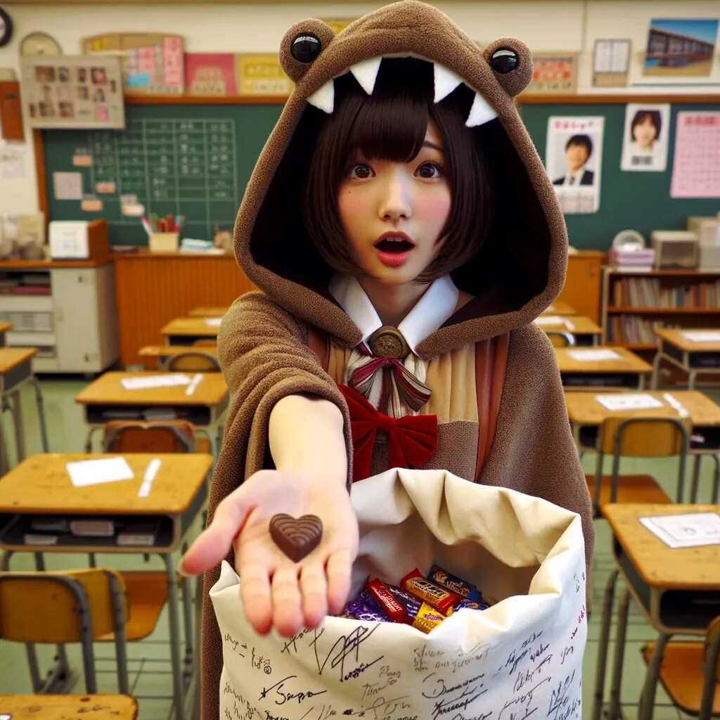 チョコを配るためにちちぷいスクールにやってきたウチノコ。