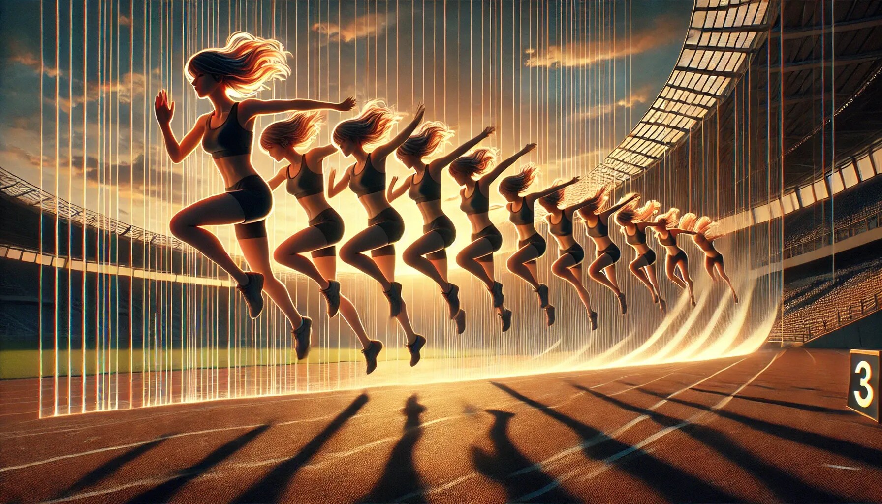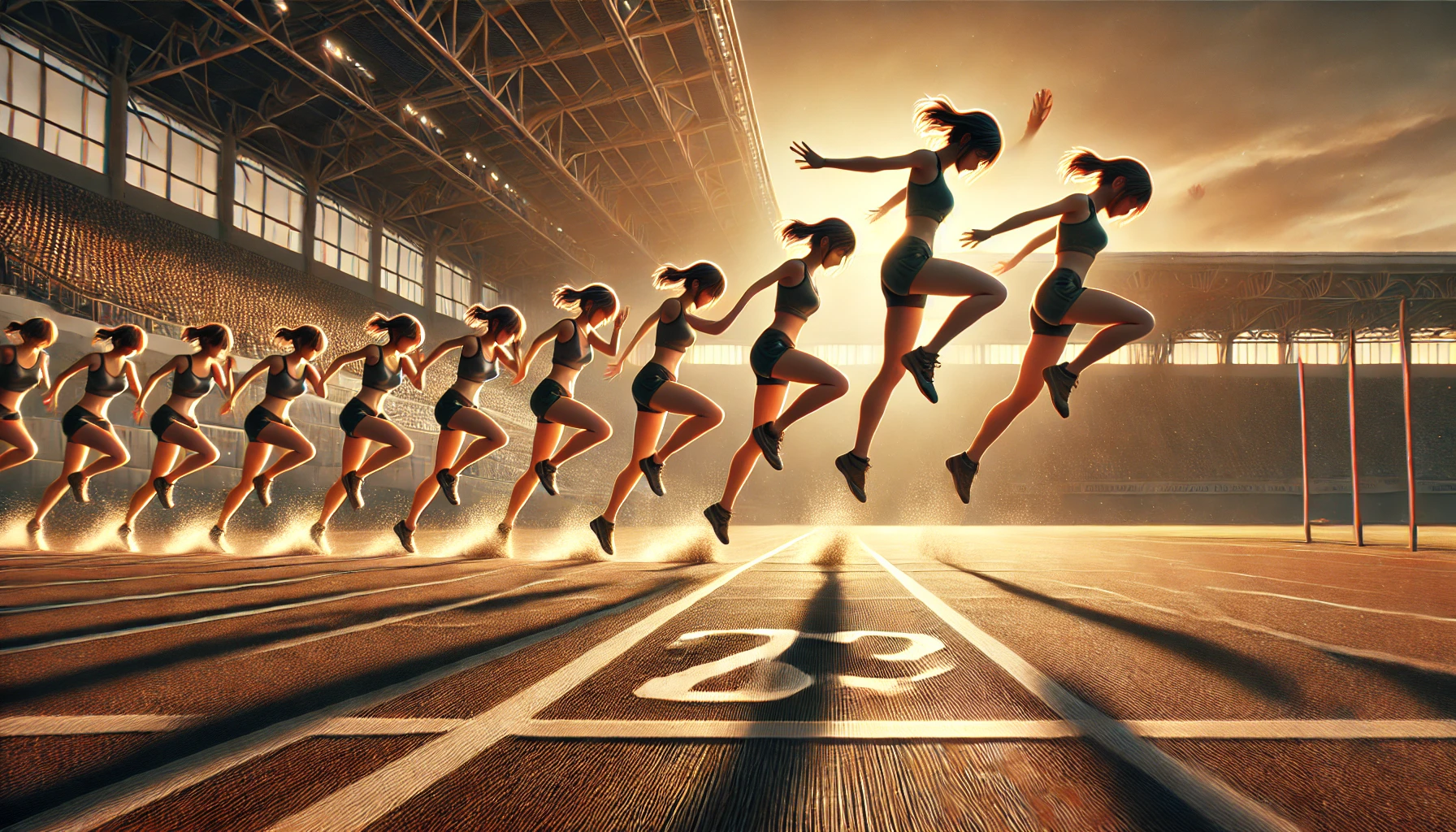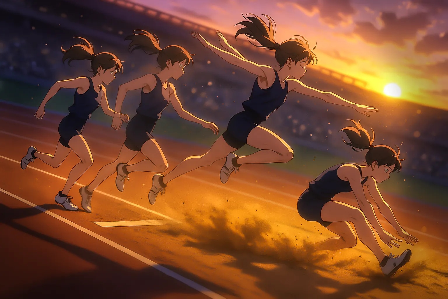 走り幅跳びを多重露光で描写しようとしたのですが。結果、わからなくもないが奇妙な感じでした。