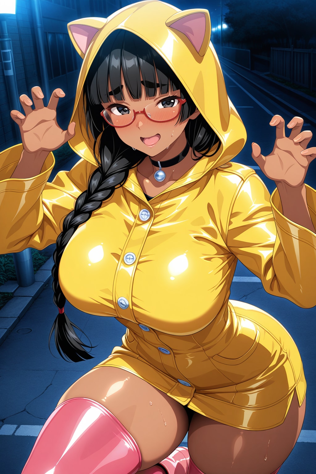 光沢裸レインコート裾長長靴 MaYoさん のプロンプトを参考にしております。