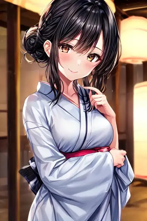 浴衣双葉と屋台デート(眼鏡無し・お団子ヘアVer)