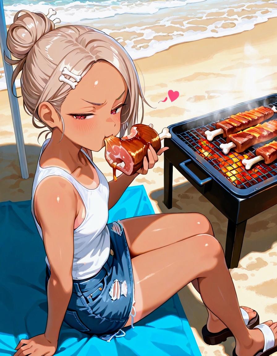 おにくを喰らう、お団子ヘアおにくちゃん🍖✨