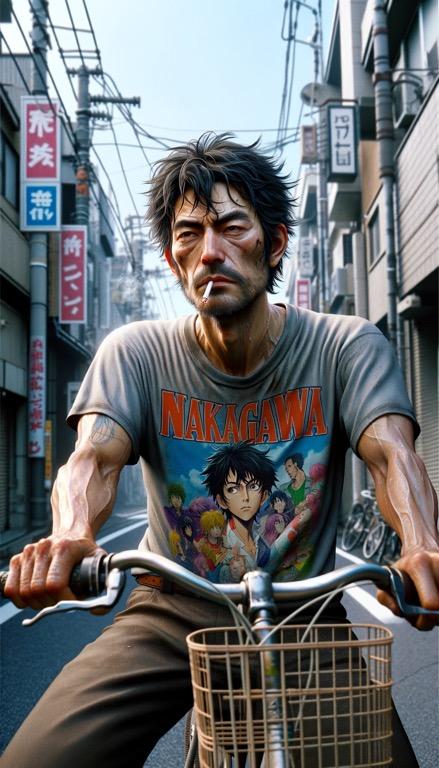 11、中川と言うやさぐれた日本人がアニメTシャツを着てチャリを漕いでいる(友人)と入れたこうなりました笑