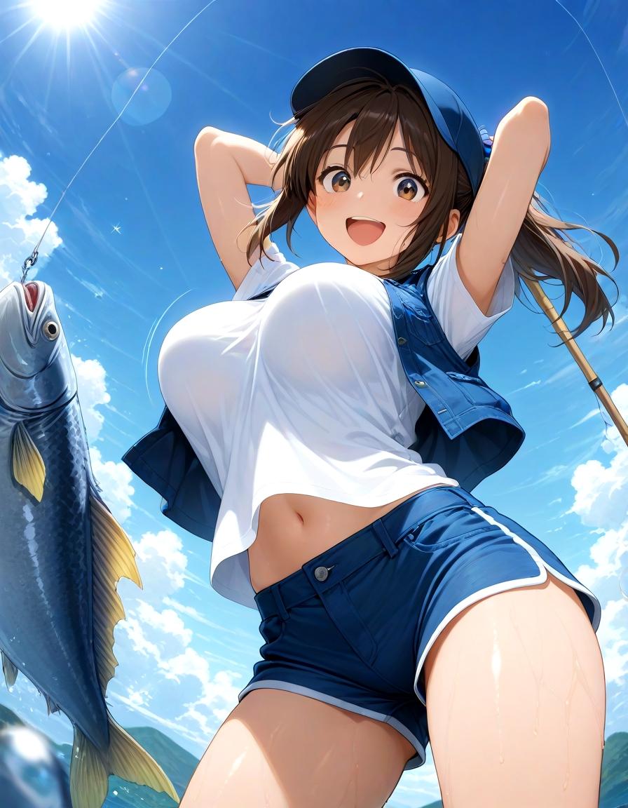 ②釣りがお趣味とのことで、魚の釣り上げシーン。