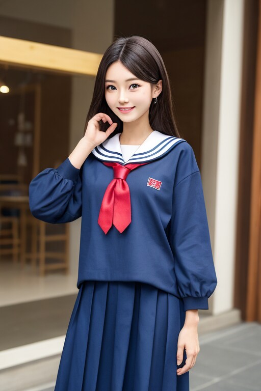 意外に難しいのが、上着・襟・袖・スカートを紺一色に揃えることです。ネガティブプロンプトも使いながら試行しています。