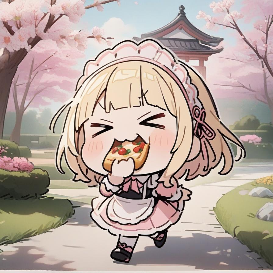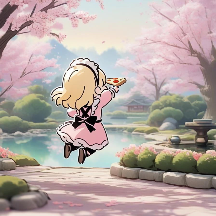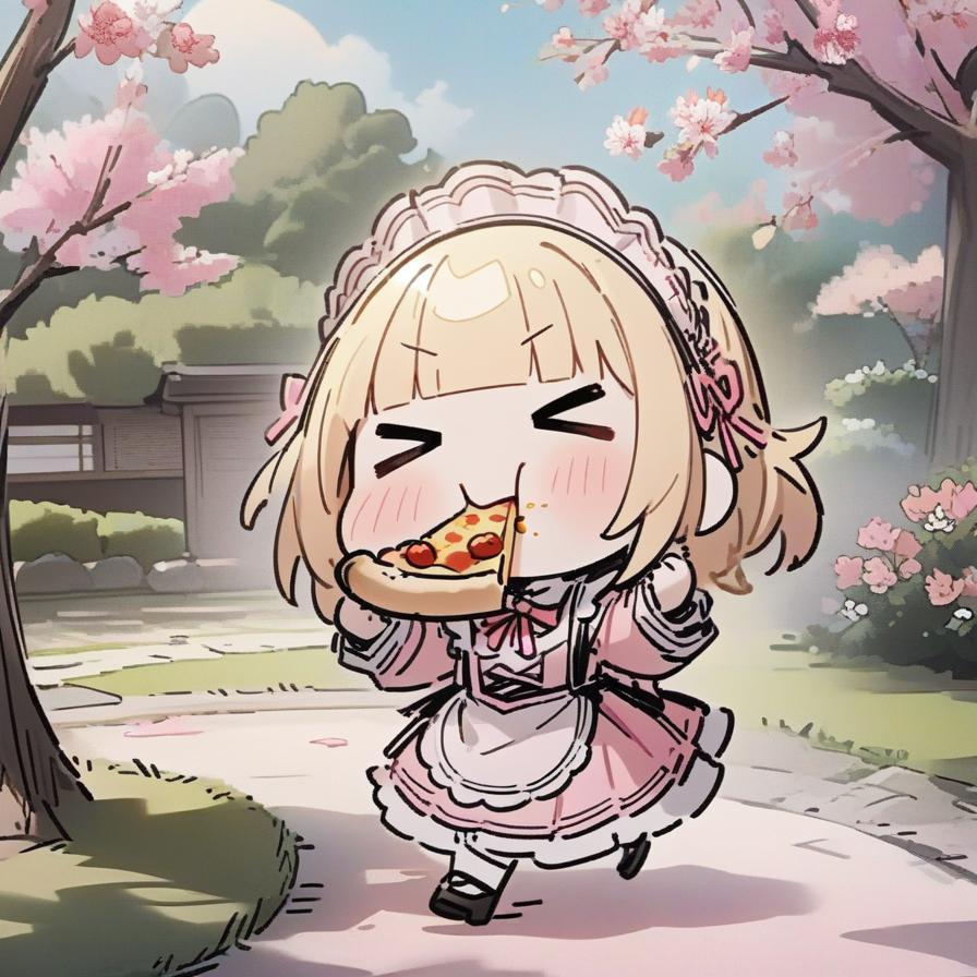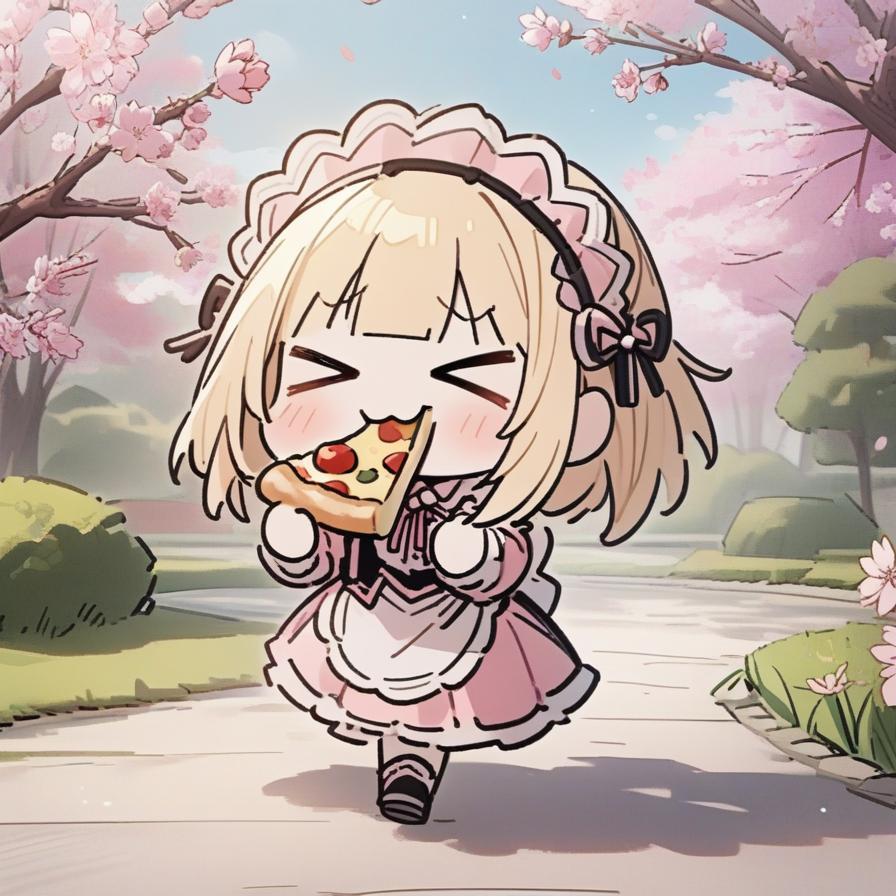 🌸お花見専用メイド服で気合いを入れるも、花よりおピッツァしちゃう系メイドちゃん🍕