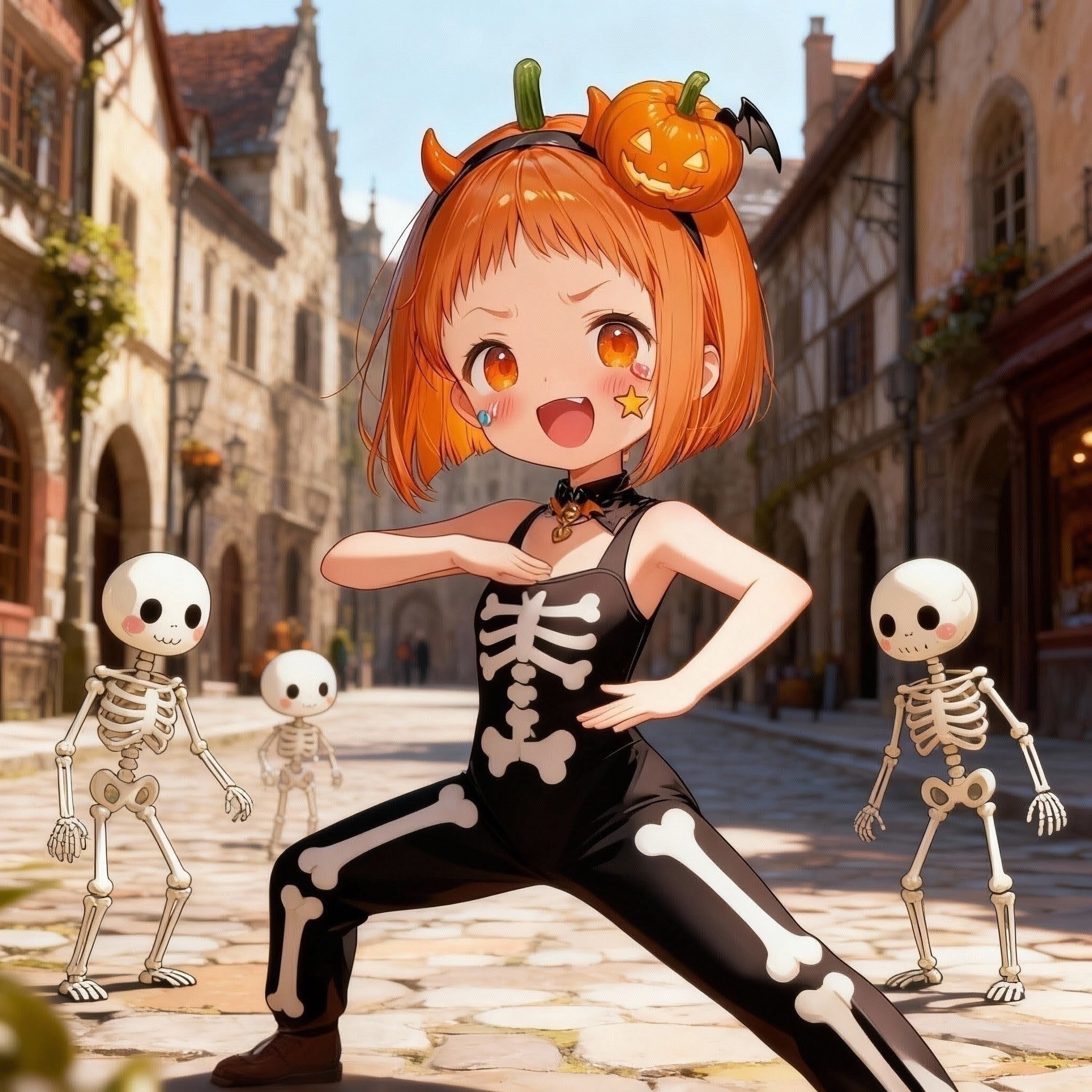 特撮ヒーローの影響かチビッコスケルトン達に謎のポージングを伝授してる様です
