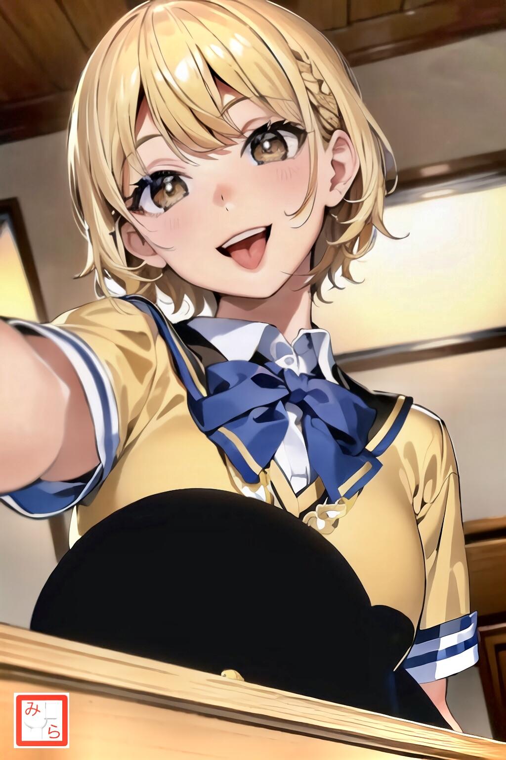 「ロックな女子高生 青心高校の甲本ヒロコ #このキャラ使用可 #CrazyEyes」(空想AI絵師そらち #そらち様)