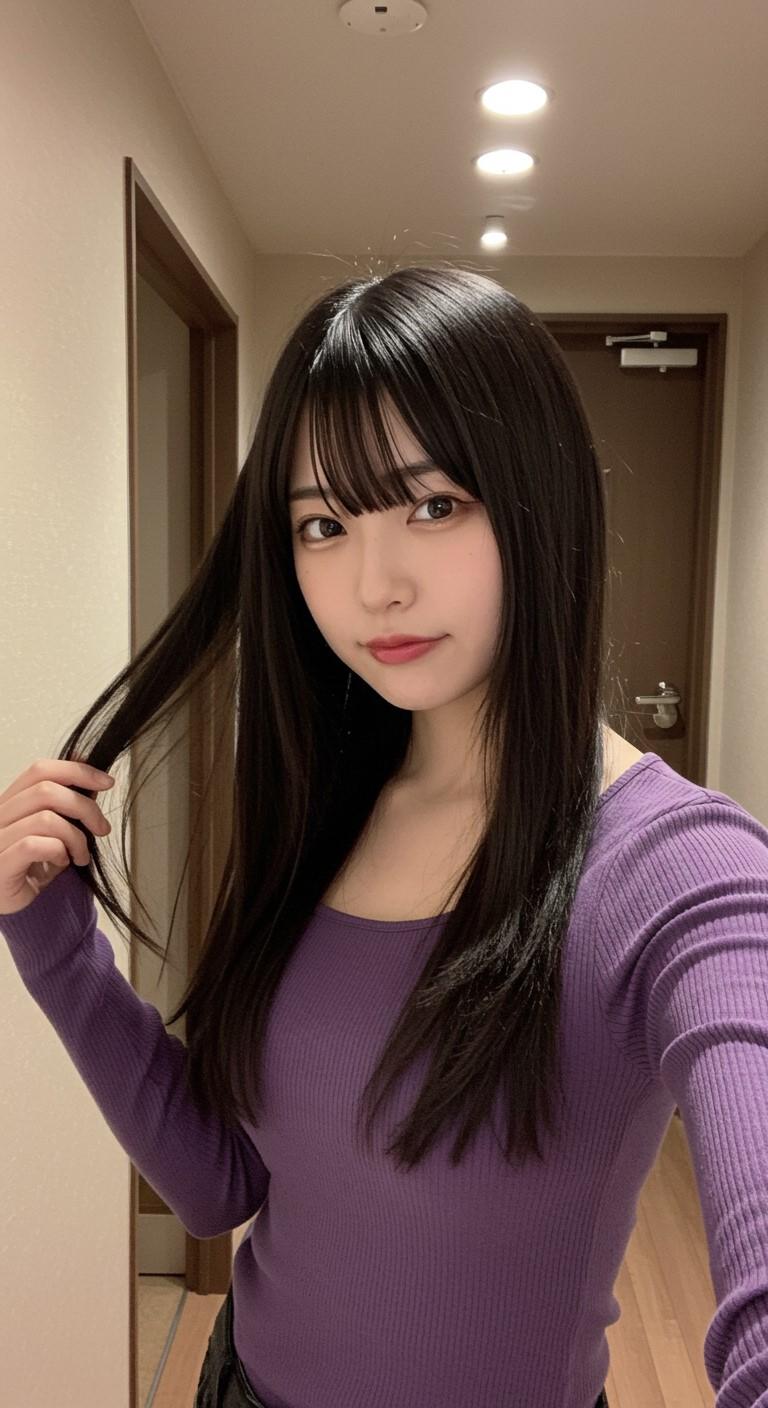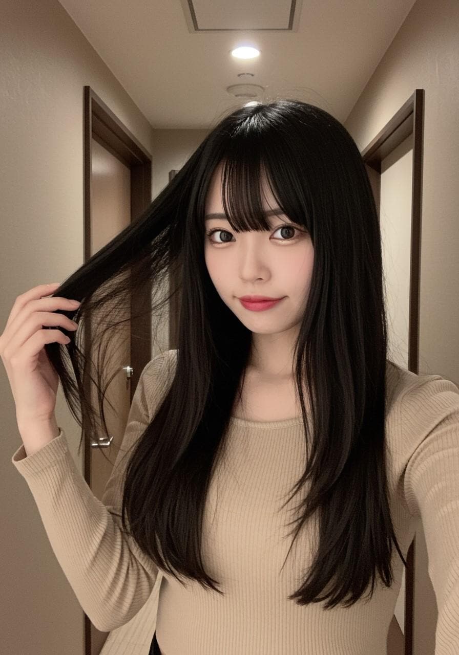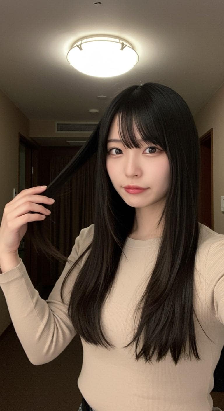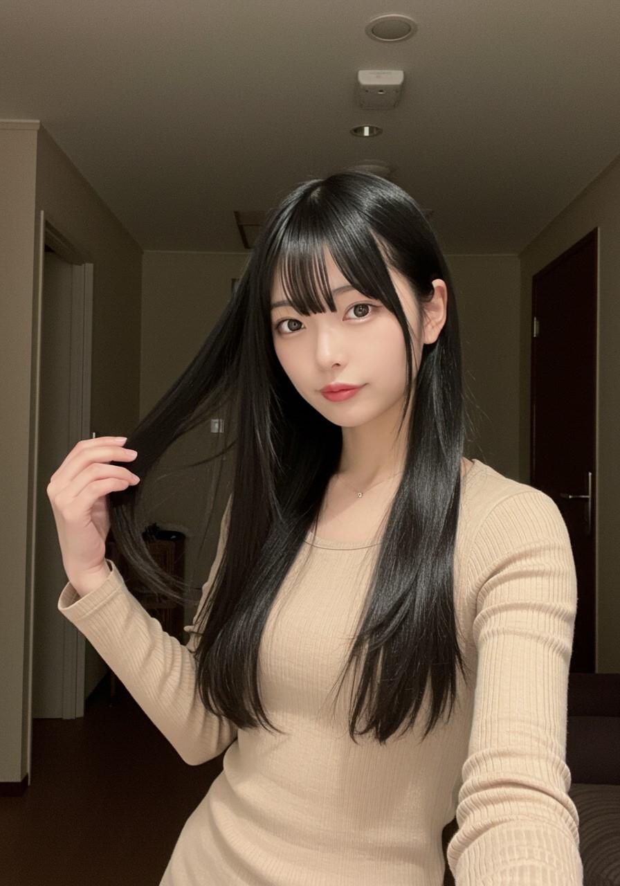 自撮りしている美人さん