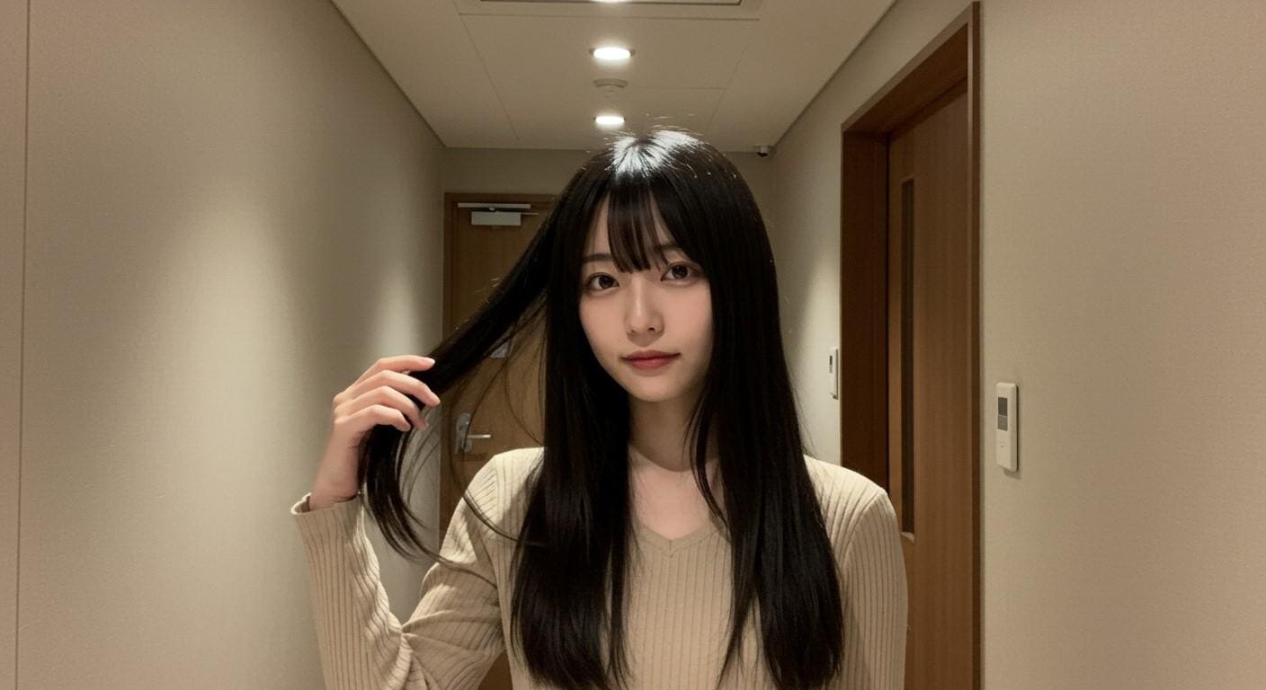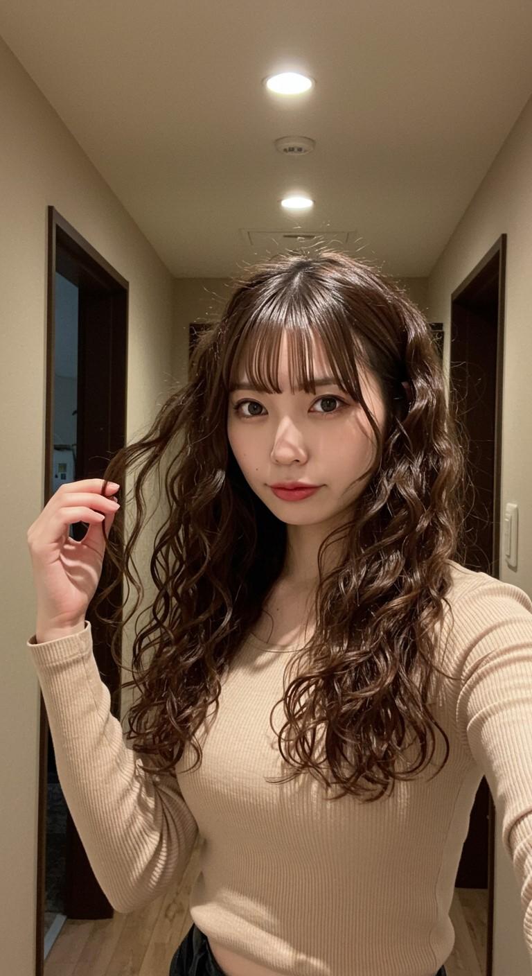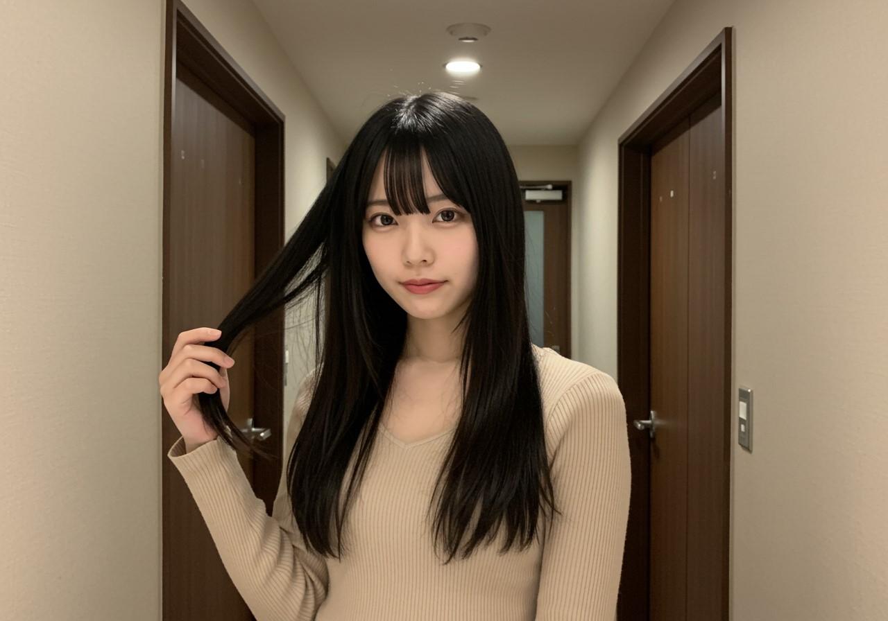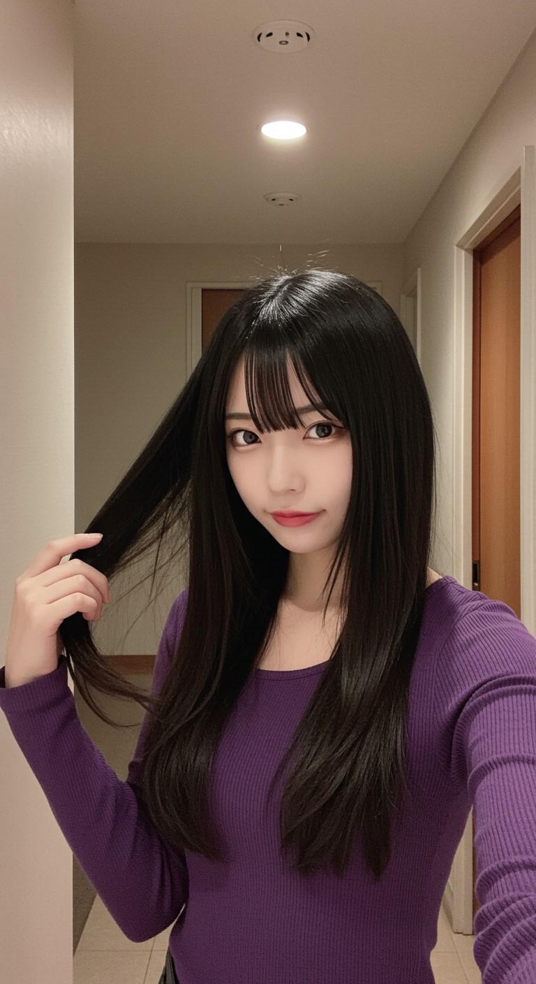 自撮りしている美人さん