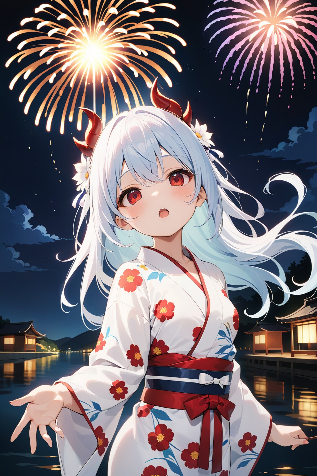 花火がパッと咲いて綺麗なのじゃ~