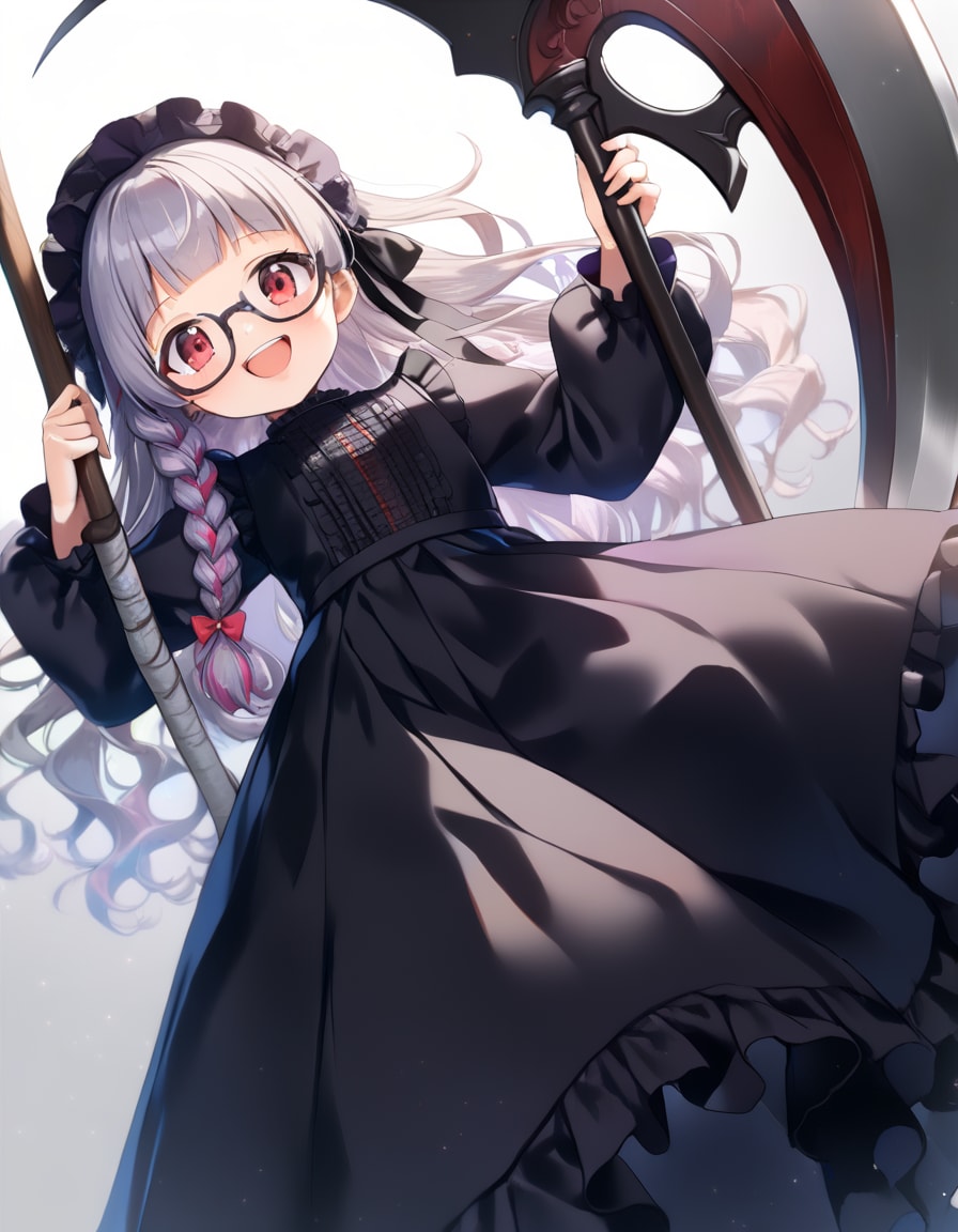 蒼銀の髪、長髪、大鎌、白と黒のゴスロリ服、ミステリアス美少女、ここからどう調整するかな…。