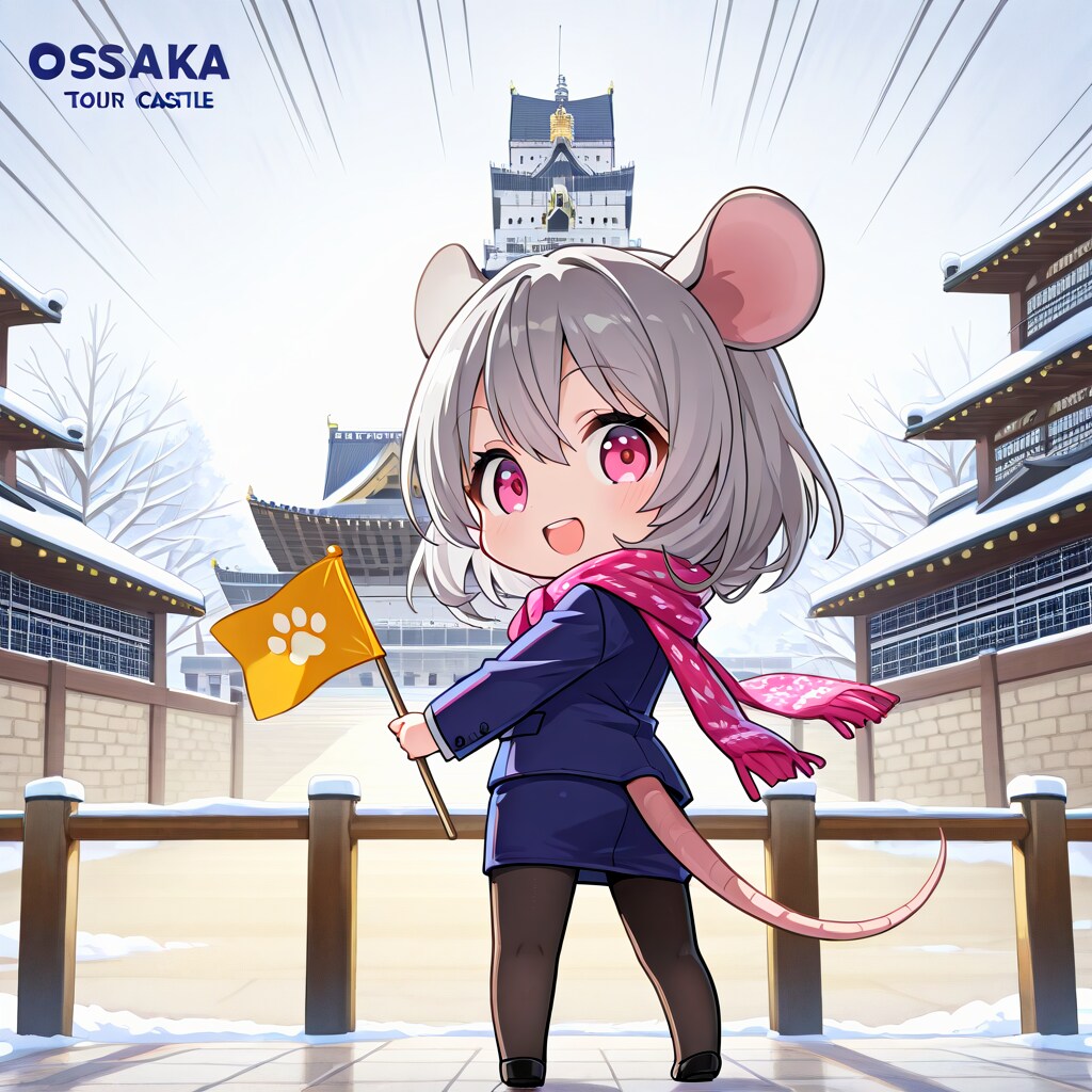 「大阪城は天守閣に入れるんですよ!エレベーターも完備です!さあ皆様行きましょう!」