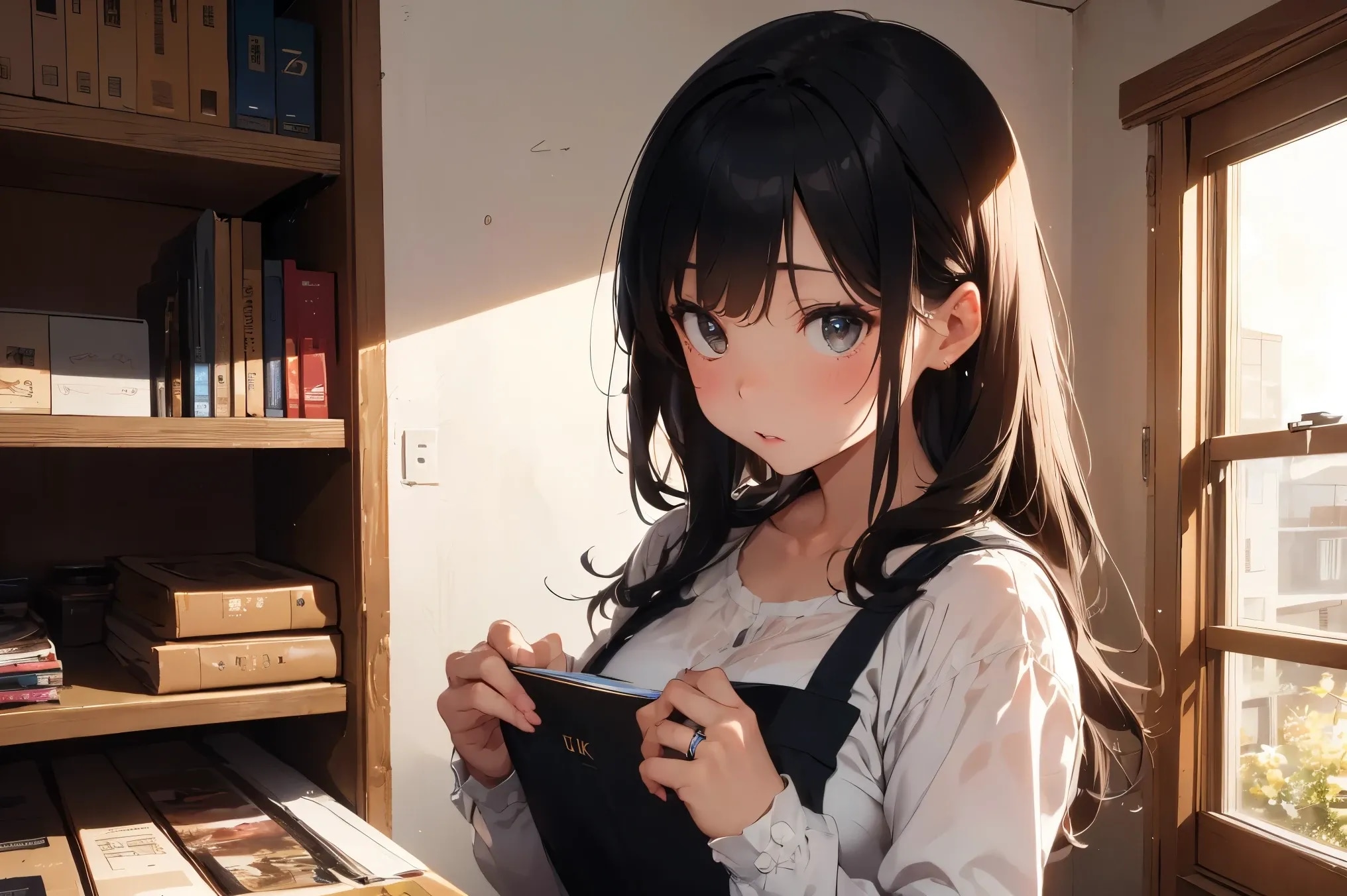 彼女は微笑みながら、アルバムを元の場所に戻し、書斎を出て行った。
