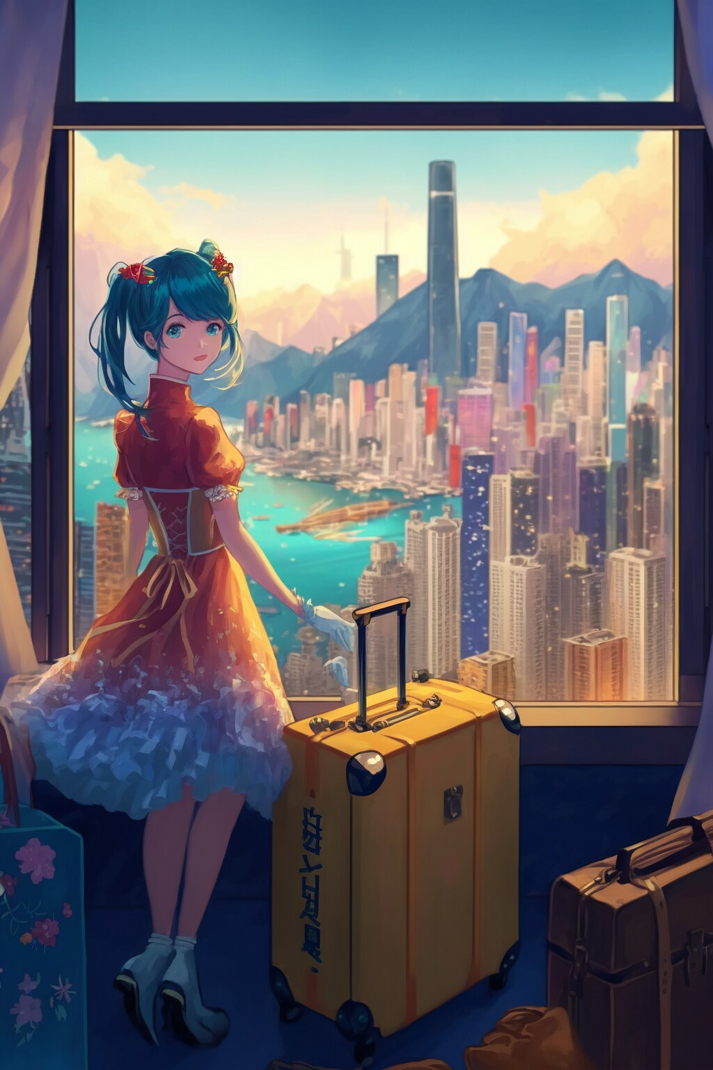 香港旅行をイメージして 当サークルシャーマニックテンプルのコミックマーケット100の旅行記同人誌「トラブルトラベル」の表紙にするために作ったもの