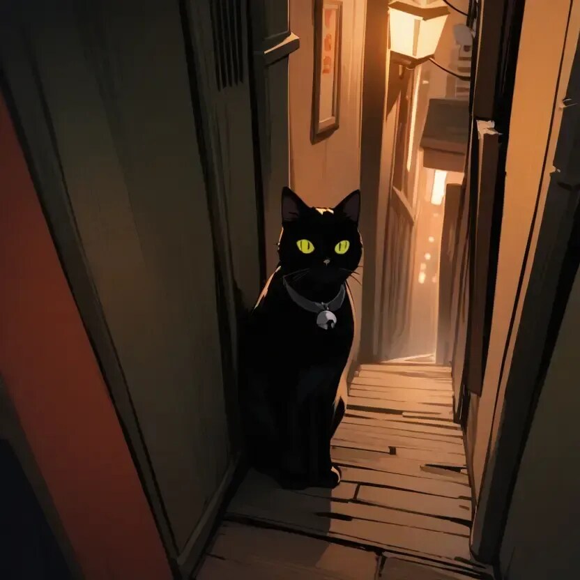 暗がりに眼を凝らして見ると、そこに一匹の黒猫。