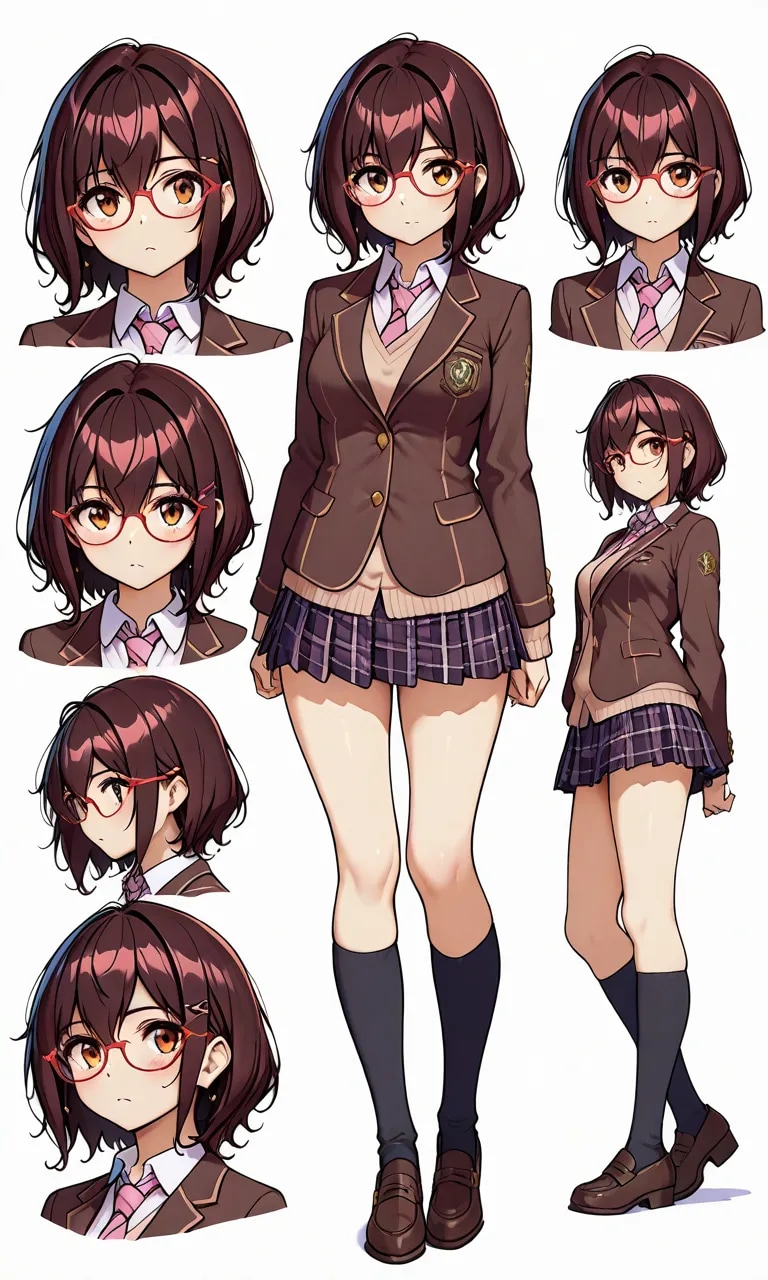 赤茶色のシャギーが入ったショートカットに赤縁眼鏡というデザイン自体はかなり昔から考えていて、