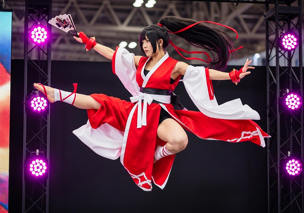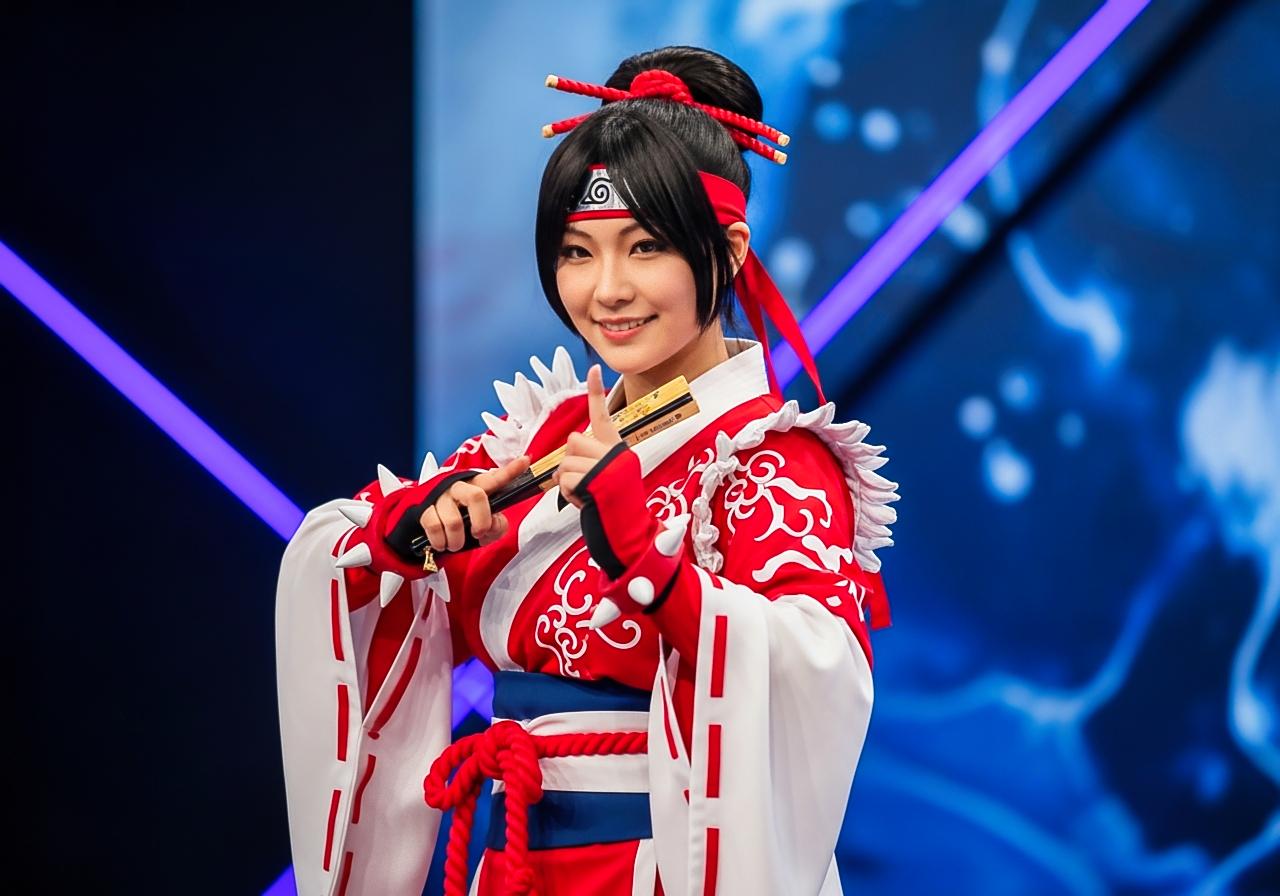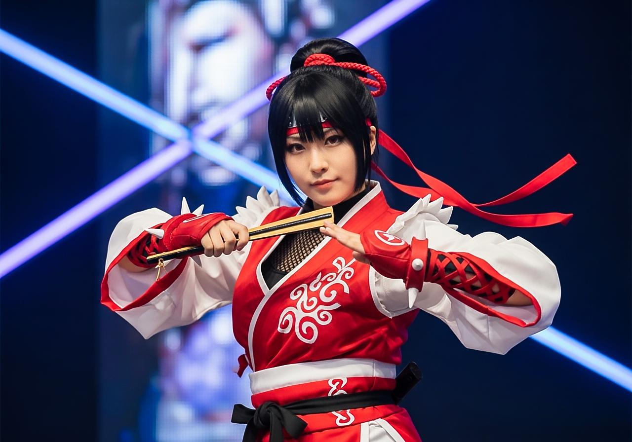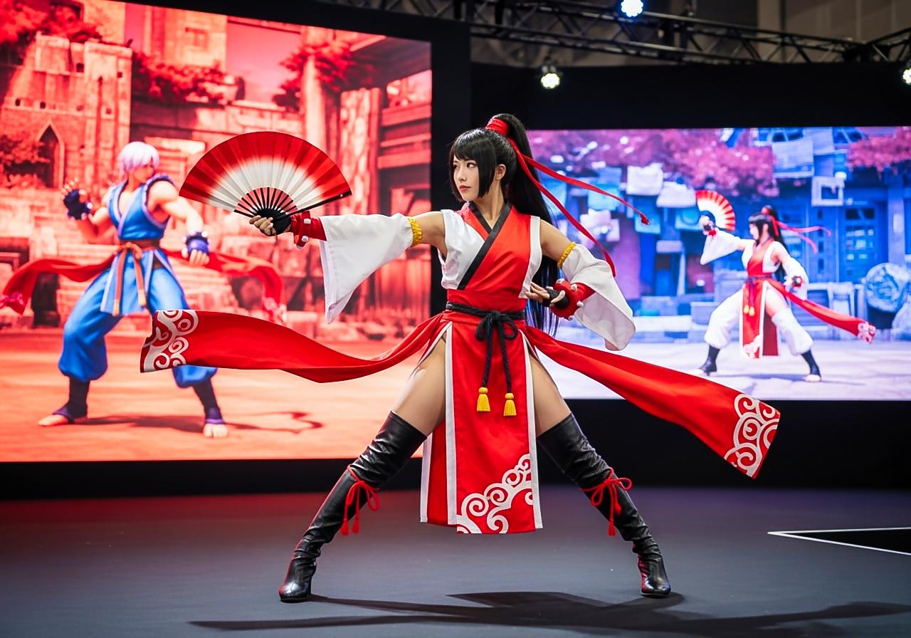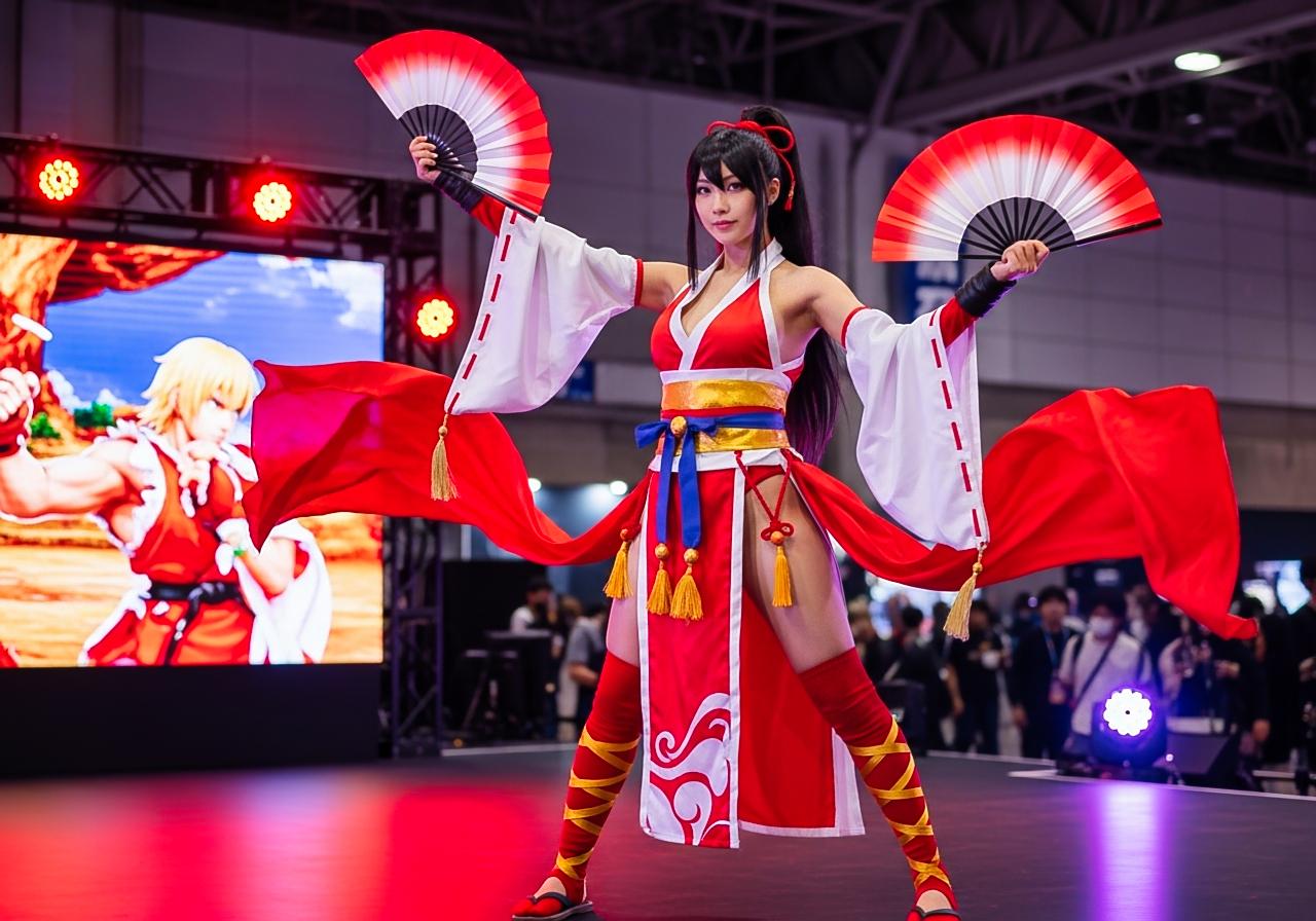 東京ゲームショウの格闘ゲームのキャラクターのコスプレをしているコスプレイヤーさん