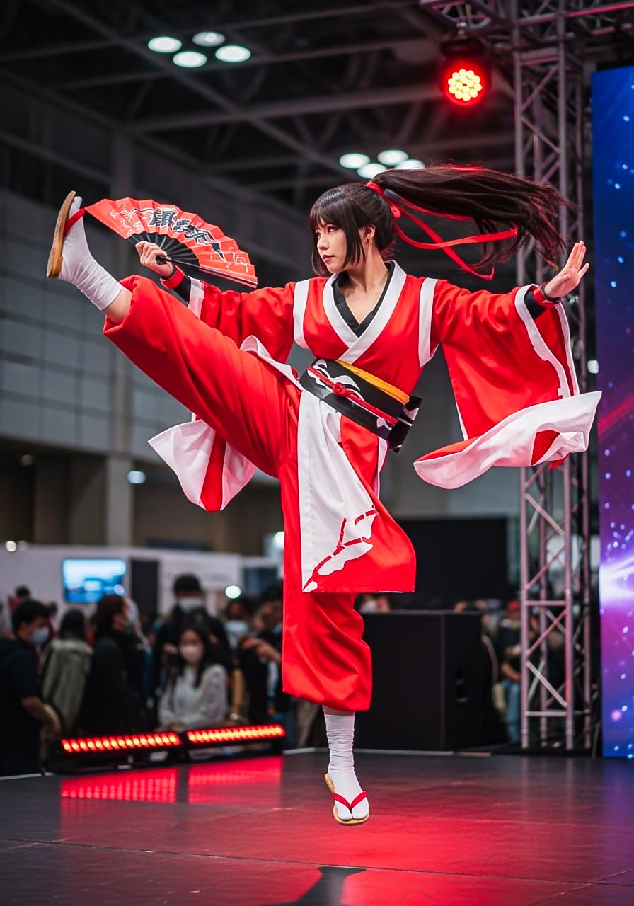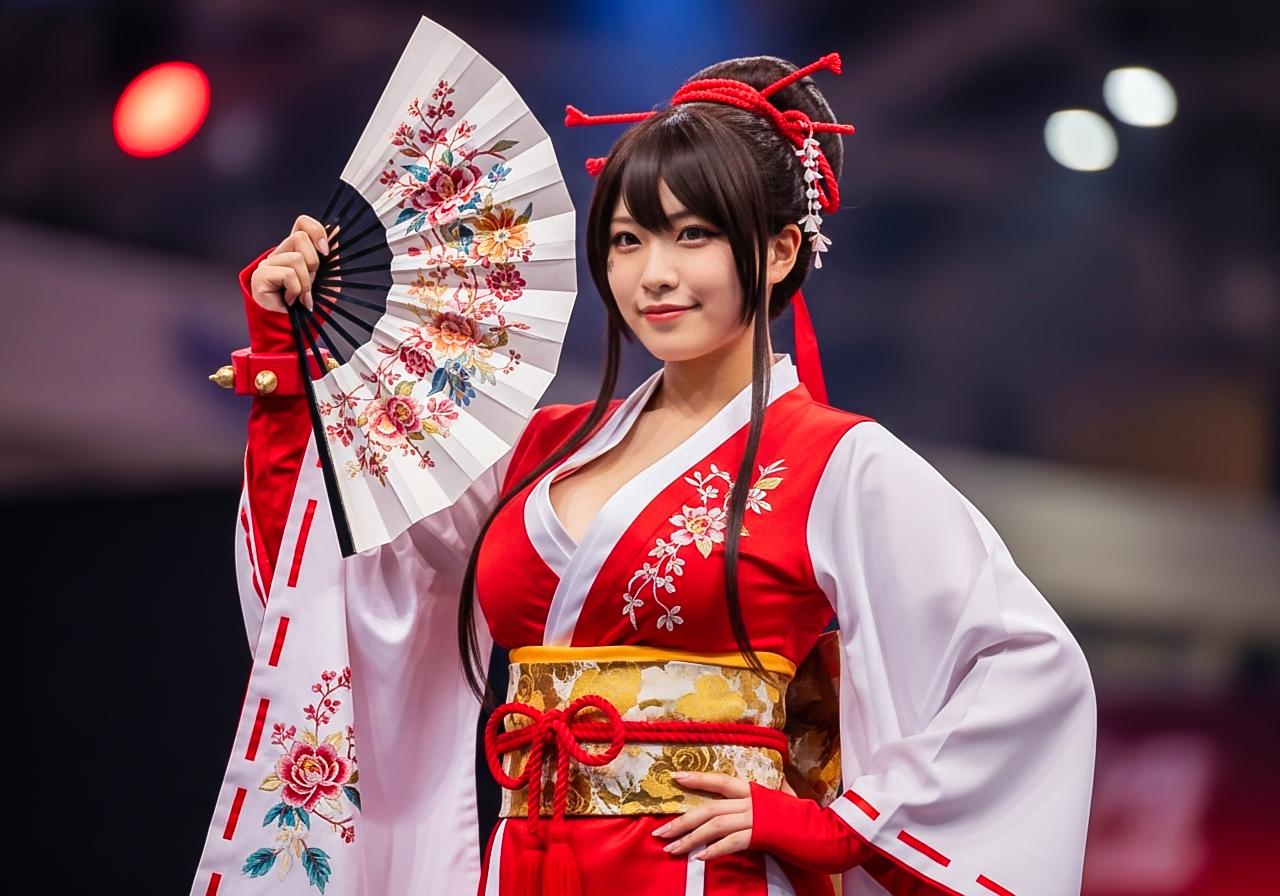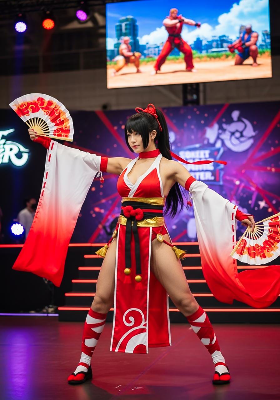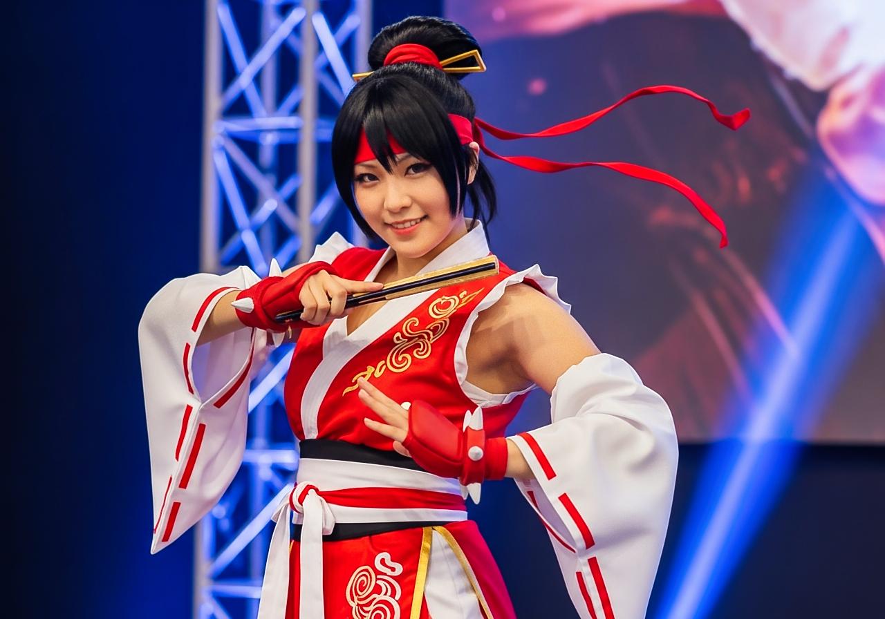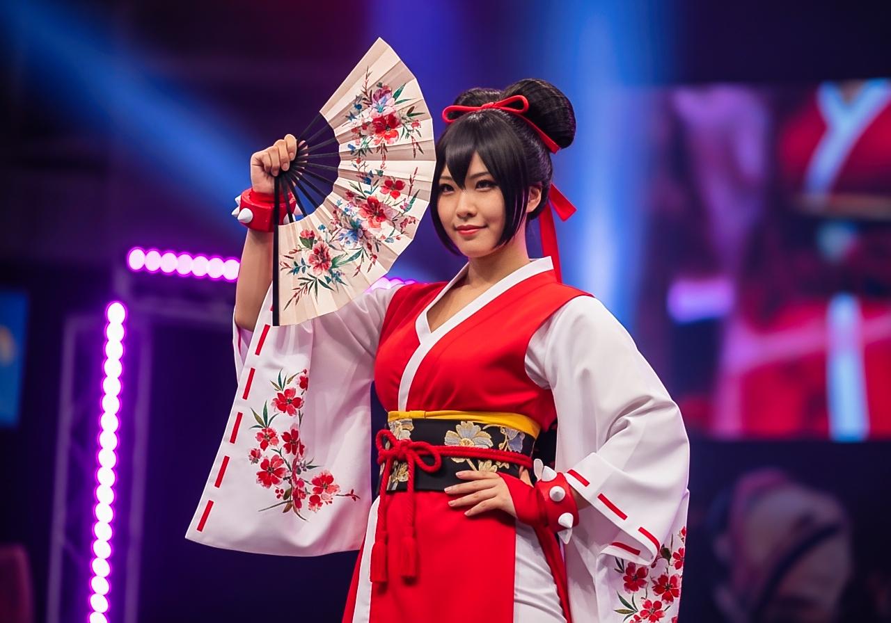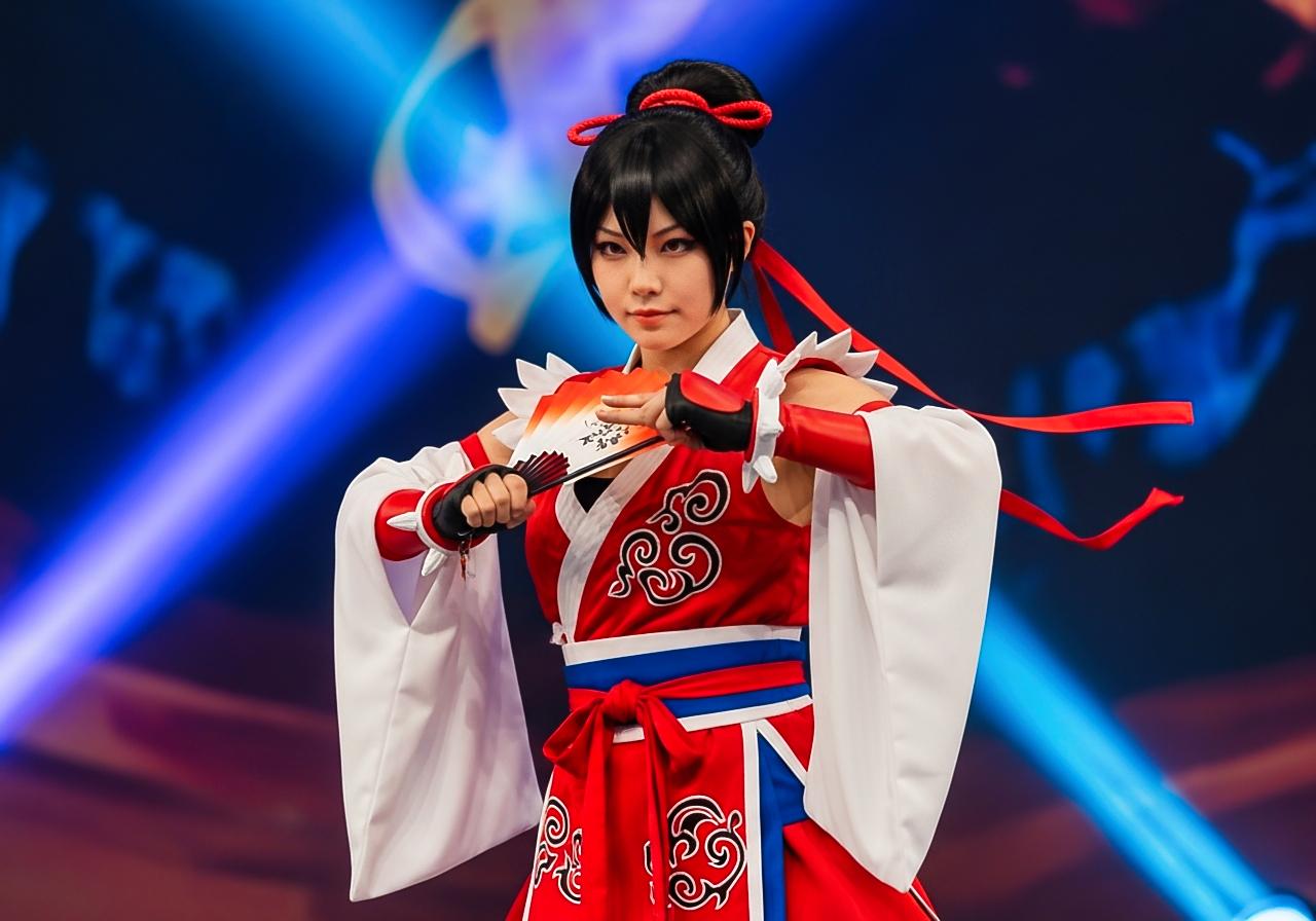 東京ゲームショウの格闘ゲームのキャラクターのコスプレをしているコスプレイヤーさん