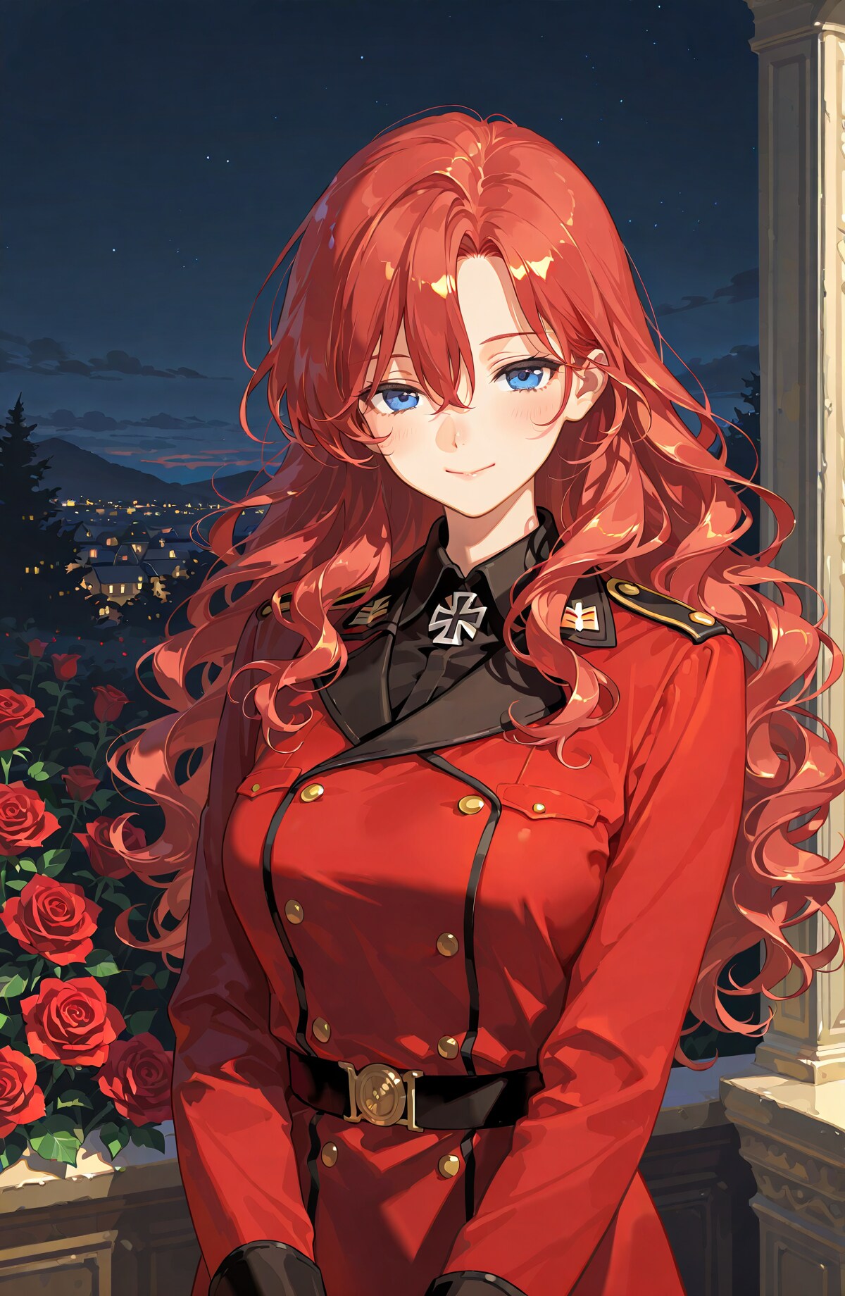 ・面白いのは軍服を指定すると胸元に、12世紀のドイツ騎士団~現代のドイツ連邦共和国まで使われている鉄十字の紋章がよく召喚されること。ドイツ出身という設定のあるこのリーゼロッテにはぴったりなんですが、特に呪文でドイツ要素はどこにも指定してないんですよね。学習されるぐらいイラストの世界でも人気ということでしょうか。ドイツの軍服は世界一ィ!
