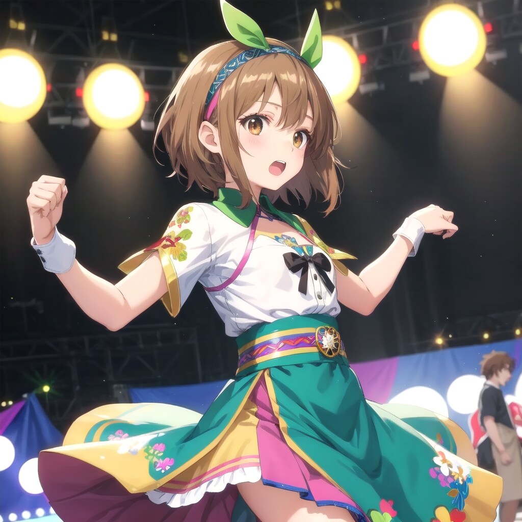 メキシコの民族衣装: 彼女はカラフルなフローラル刺繍が施されたブラウスとスカートを身にまとい、鮮やかな色合いが活動的な彼女のエネルギーを引き立てます。ヘアバンドは民族衣装のアクセントにもなり、フェスティバルで踊る彼女の姿は周囲の人々をも明るくします。