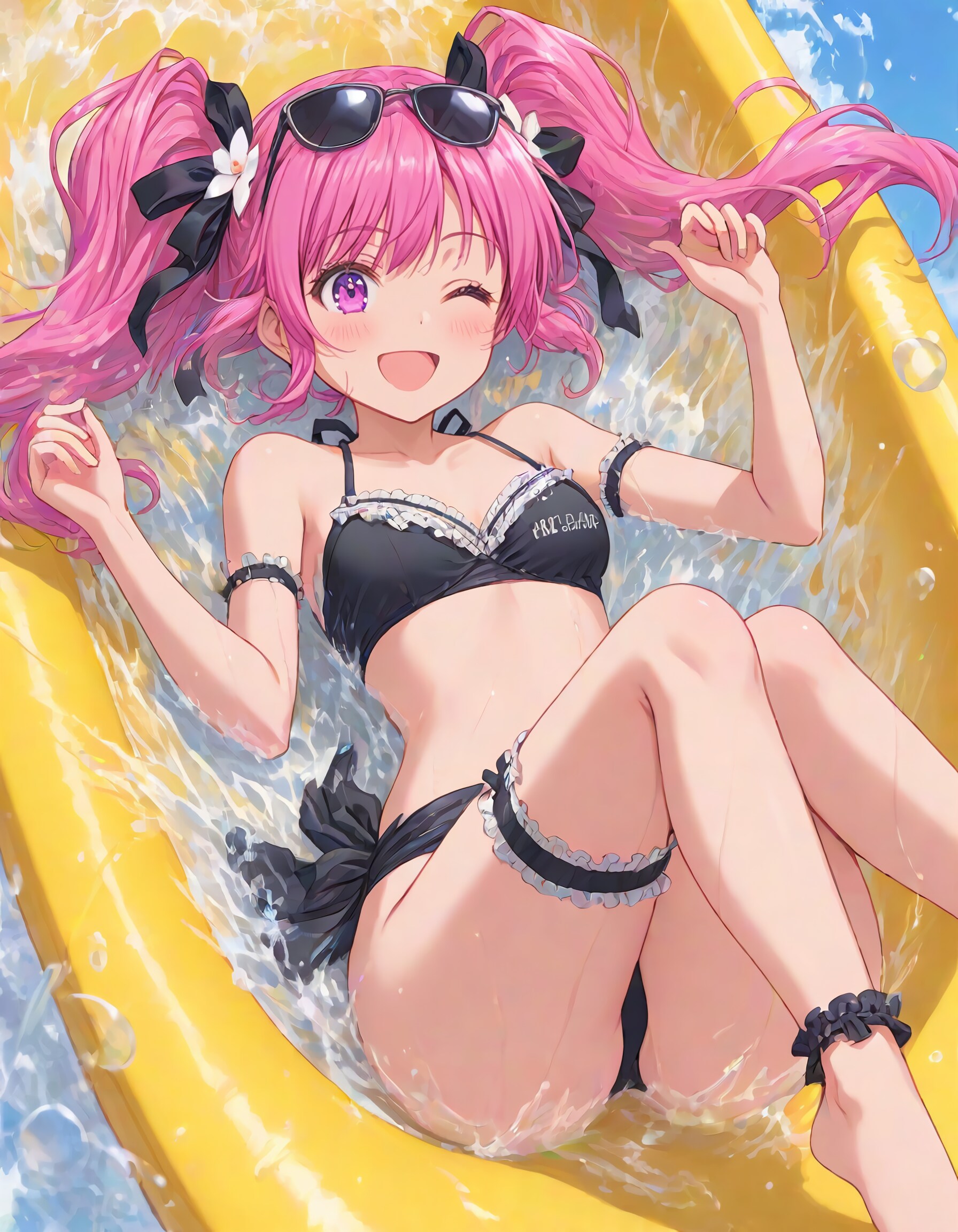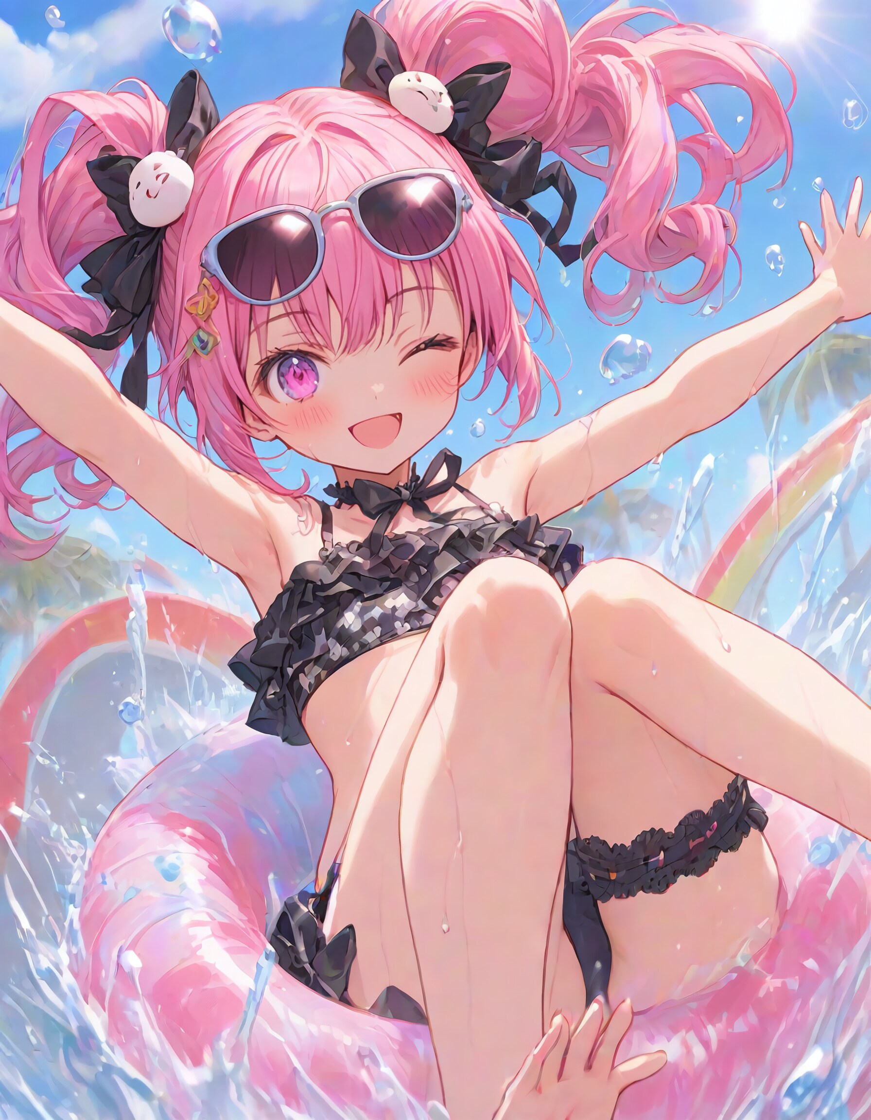 造形が安定しないアイコンの人、今回はツインテール、おでこサングラス、レッグチョーカー(レッグガーター)でおしゃれしてみました。