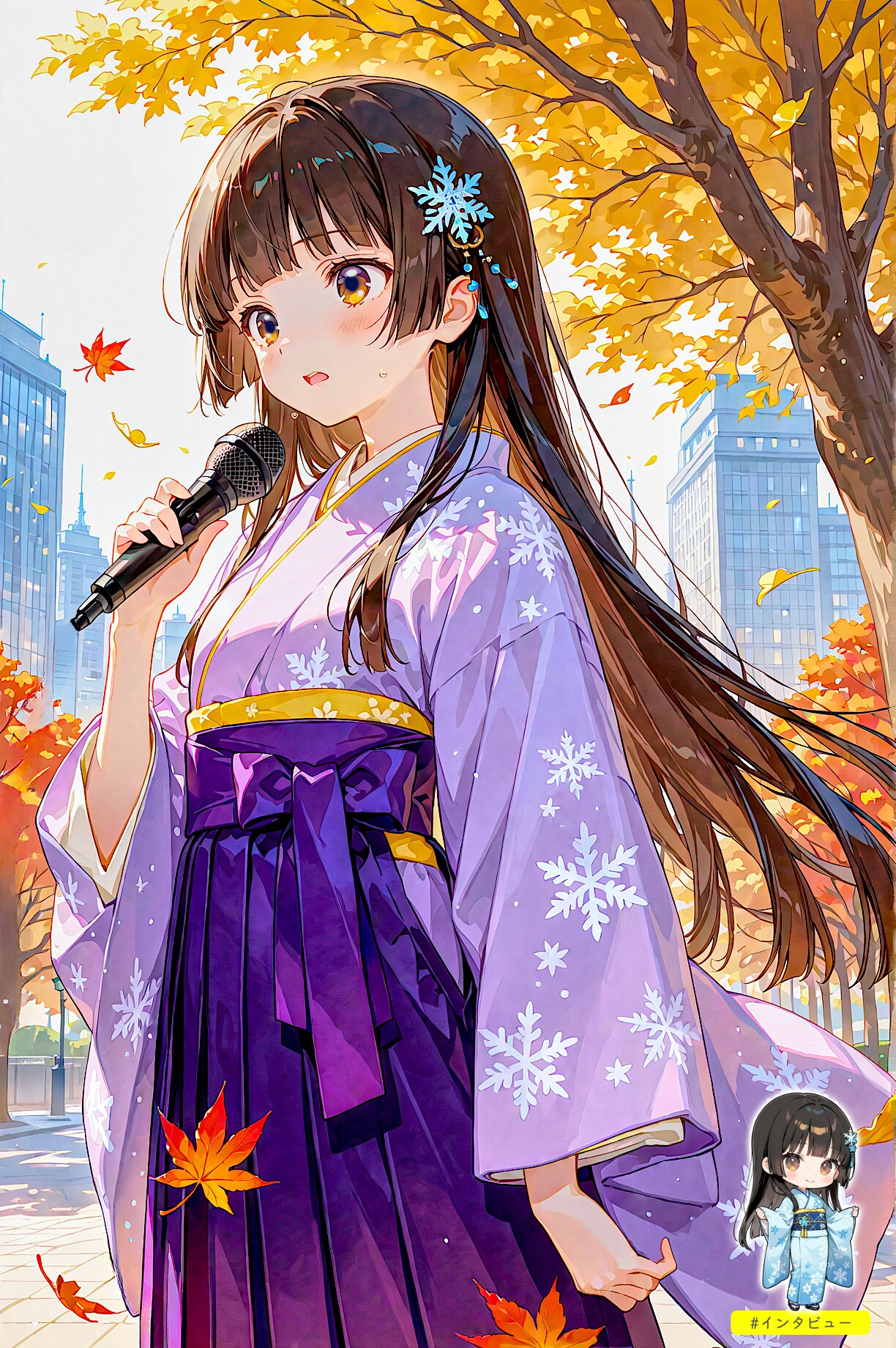 【追記】皆さん回答ありがとうございます。インタビュー+和風ぱわーで2025年10月18日のデイリー呪文あり2位、SDXLも2位、#オリジナルで1位という高順位達成でした!🍁🎤