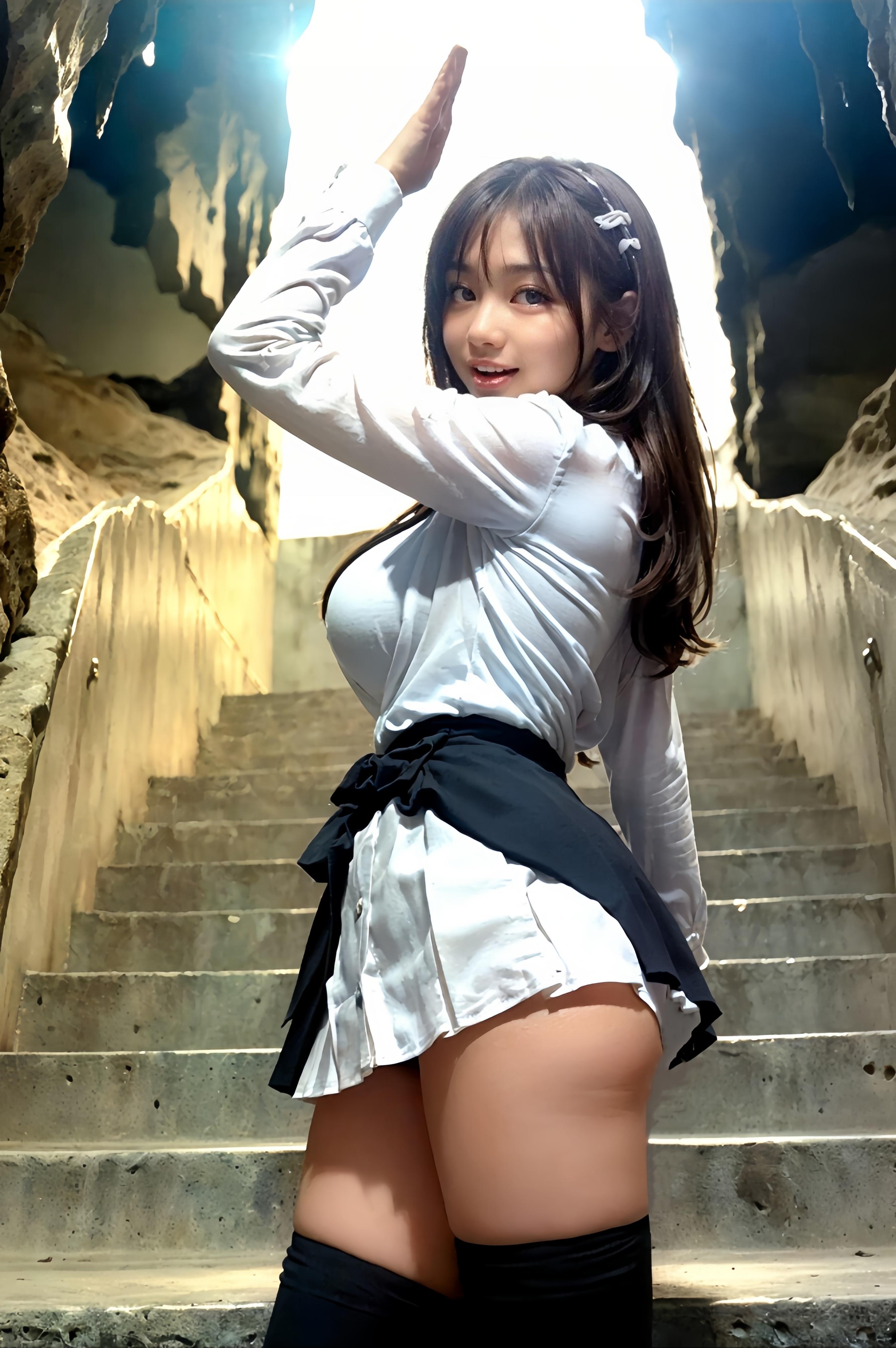 彼氏と一緒に、地下にもぐる系の所へ…ワクワクです😊写真見て、鍾乳洞ってわかるかな~?ミクルは恥ずかしがり屋サンだけど、プロカメラマンを目指すカレシが撮影してくれると、なんだか気持ち良くなって、ポーズとったりしちゃうの❤