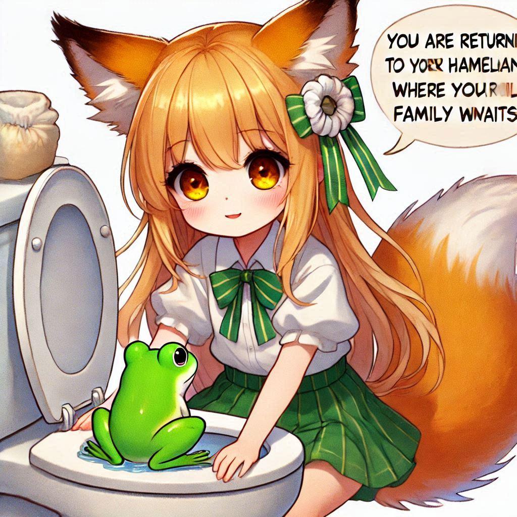 [空欄答え](トイレ)マスターが 「(くにへ) かえるんだな。 おまえにも (かぞく)が (いる)だろう…」 と(カエル)に(トイレ)を出しながら(言っ)た