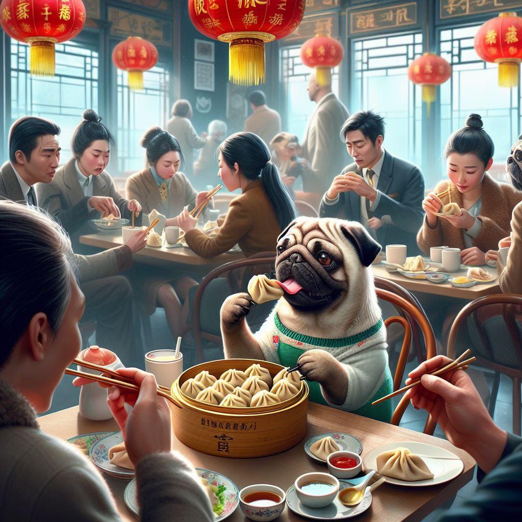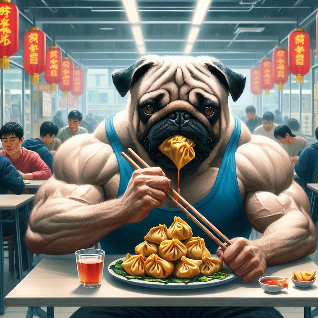 ワンタン食ってるパグ(?)