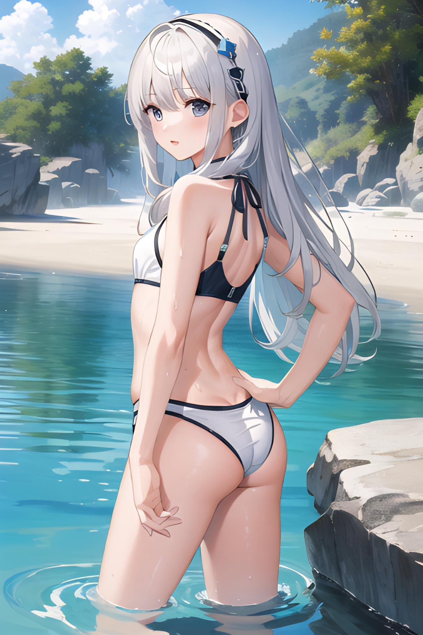 水着振り向き