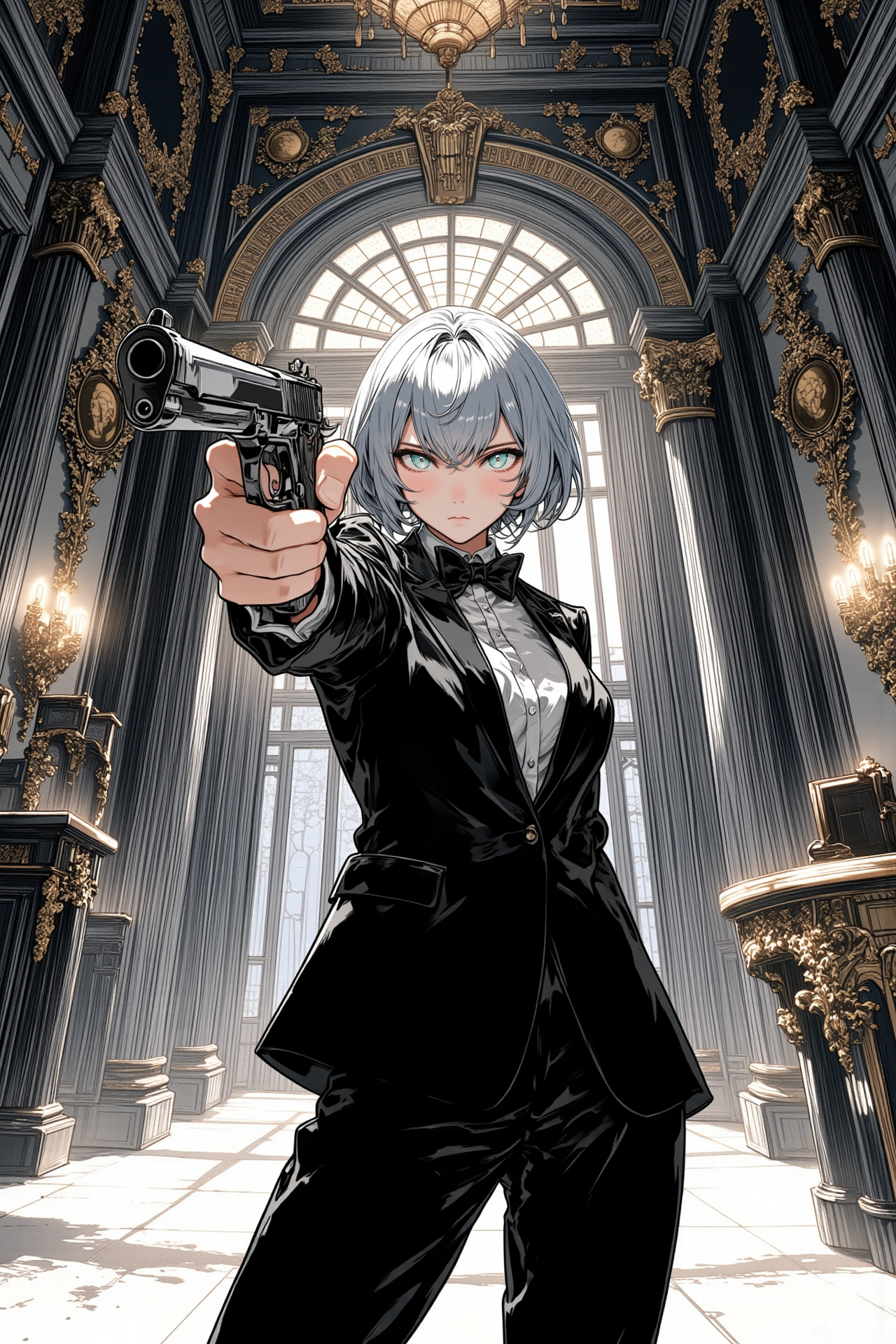 パーティー会場に潜入し標的を始末する、タキシード姿な殺し屋のおねいさんです。