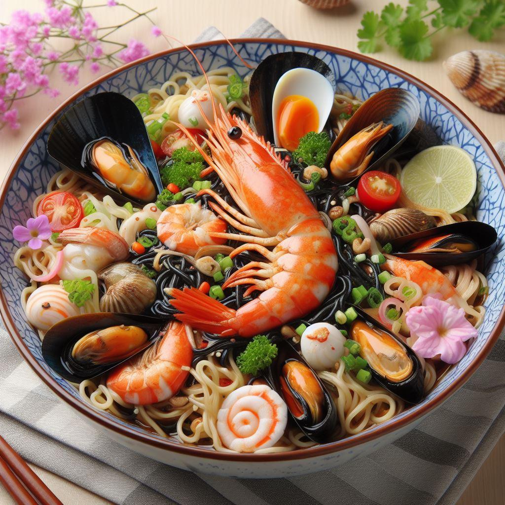 5/15追記:「爆笑するほど美味しいseafood noodle」が2024年5月14日のAIフォトデイリーランキング9位に入りました!
