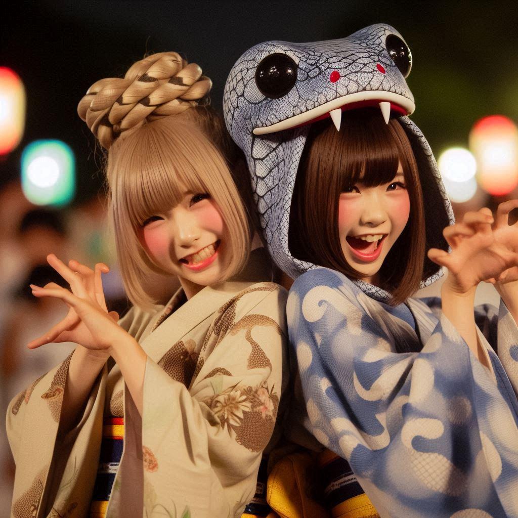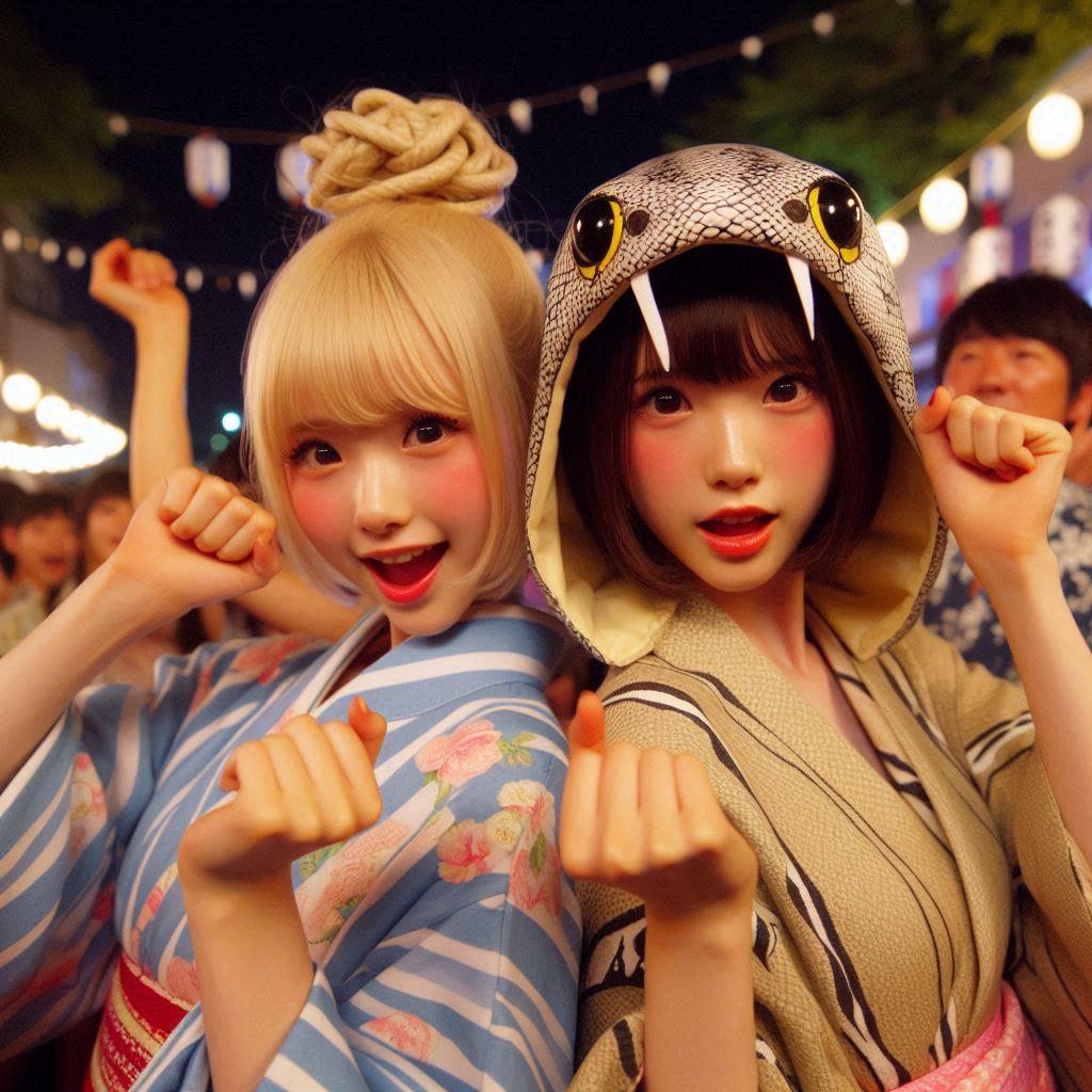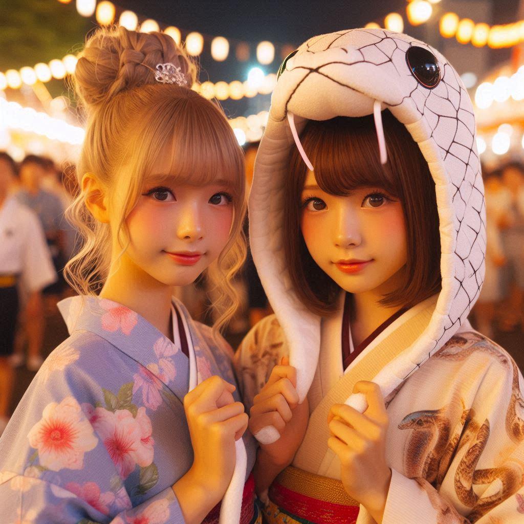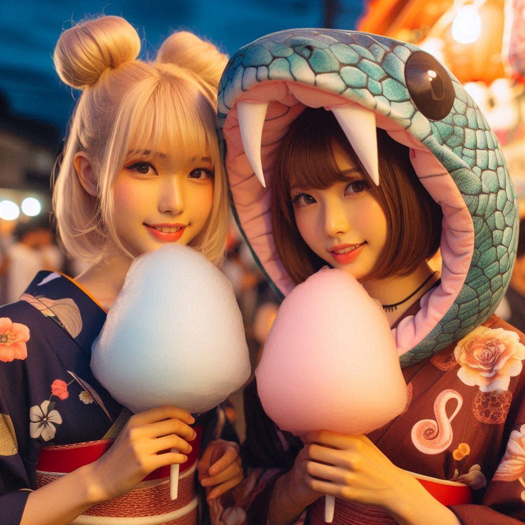 今日はお友達と一緒に夏祭りに来ています!