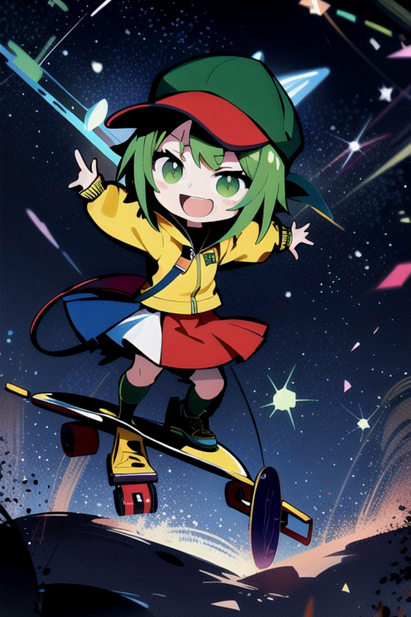 夜を楽しむ緑髪ちゃん