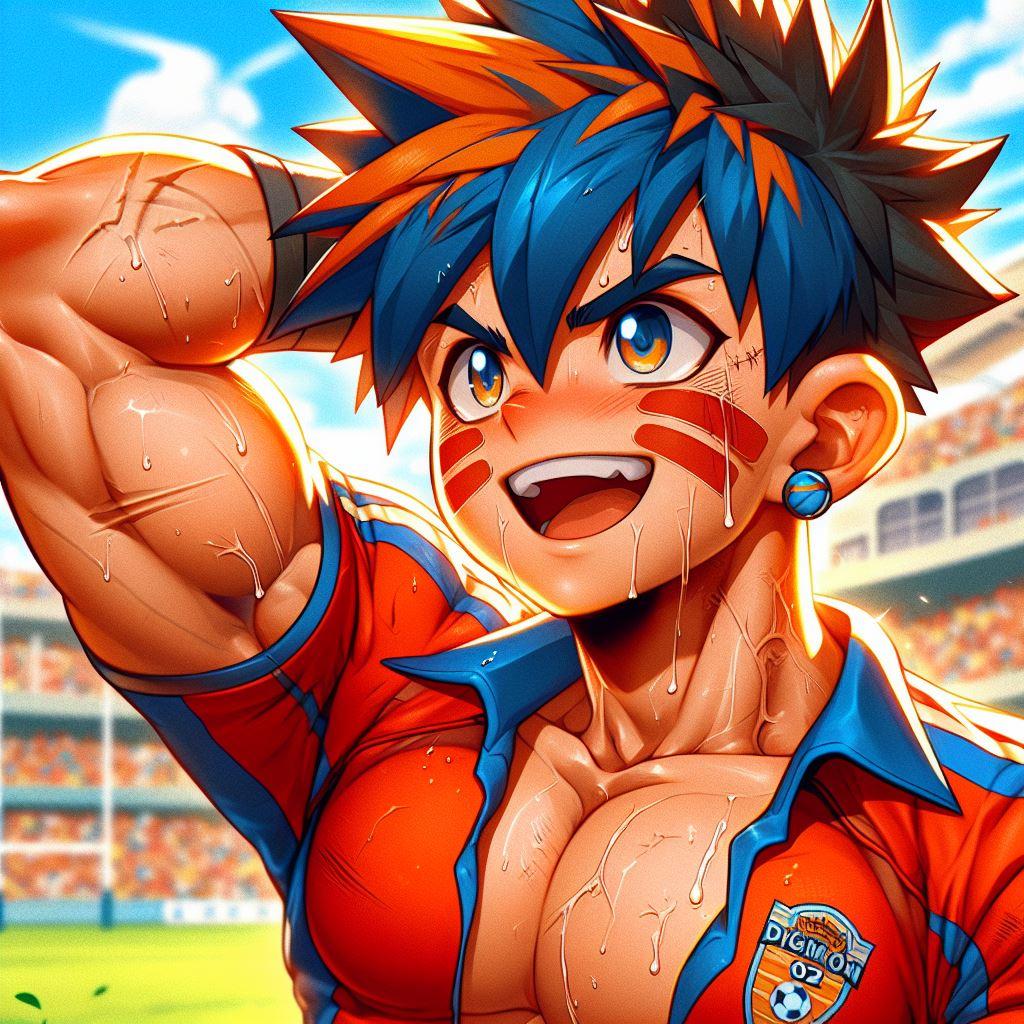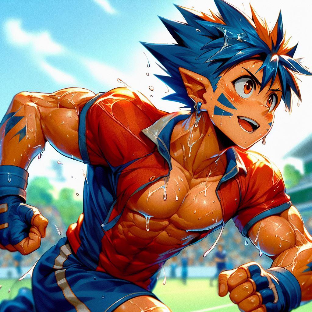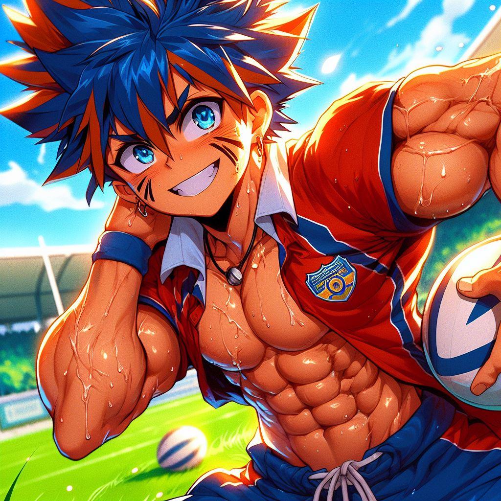 【R-18】青オレンジ髪、ラグビー、色黒、汗【筋ショタ】