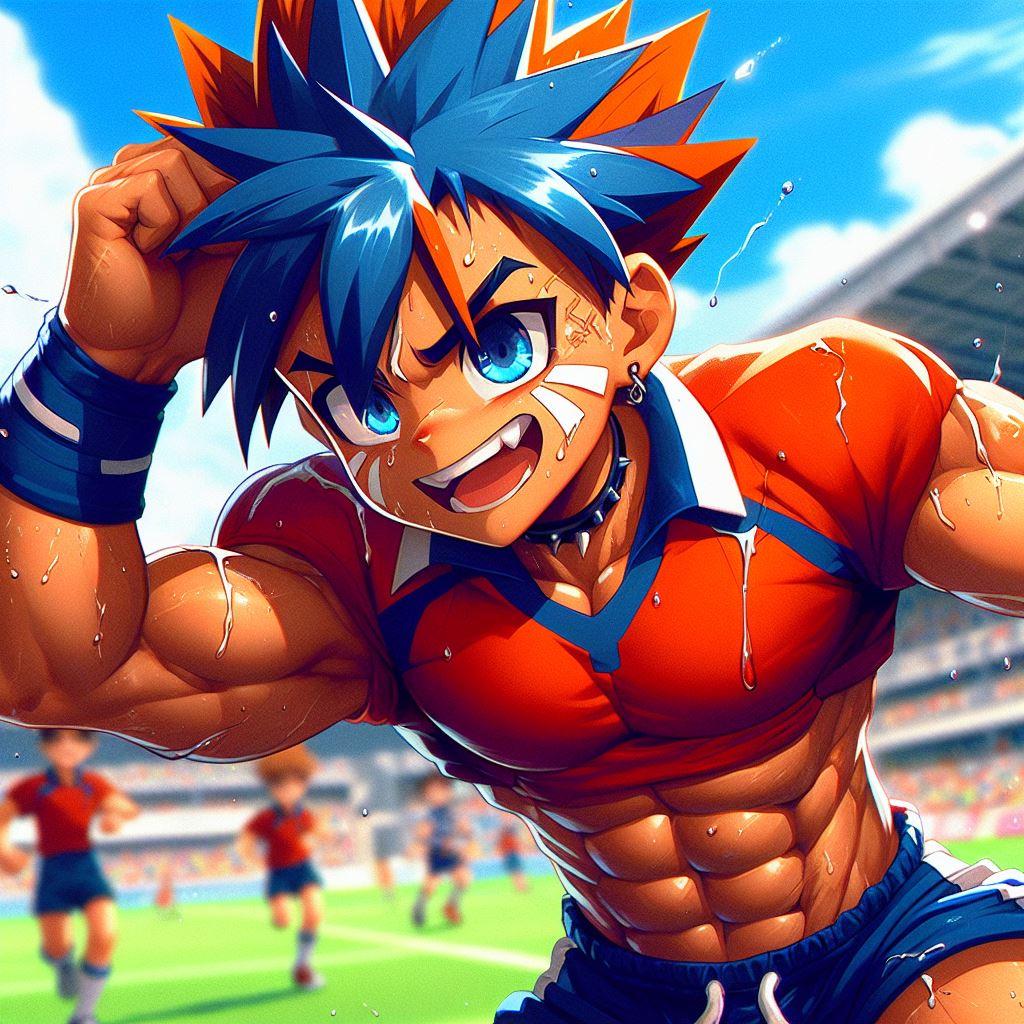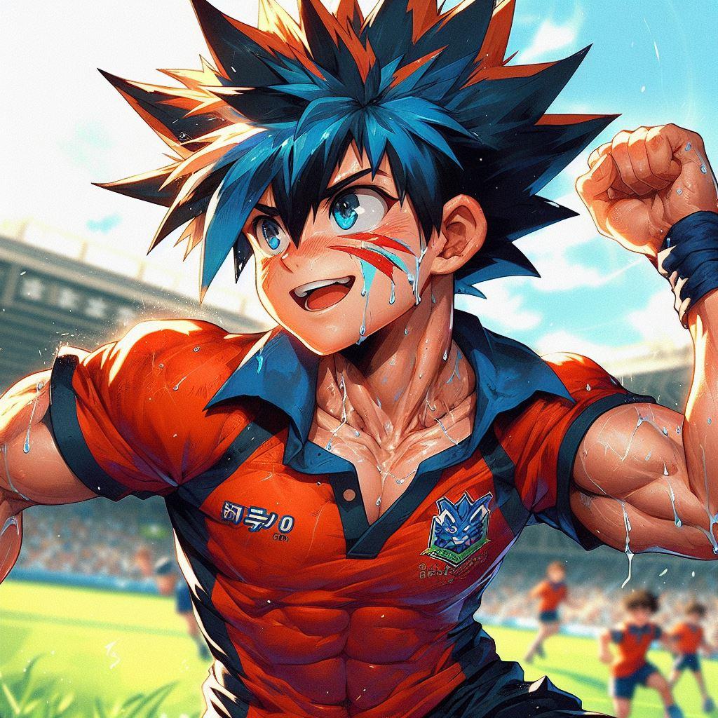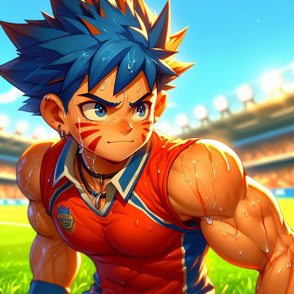 【R-18】青オレンジ髪、ラグビー、色黒、汗【筋ショタ】