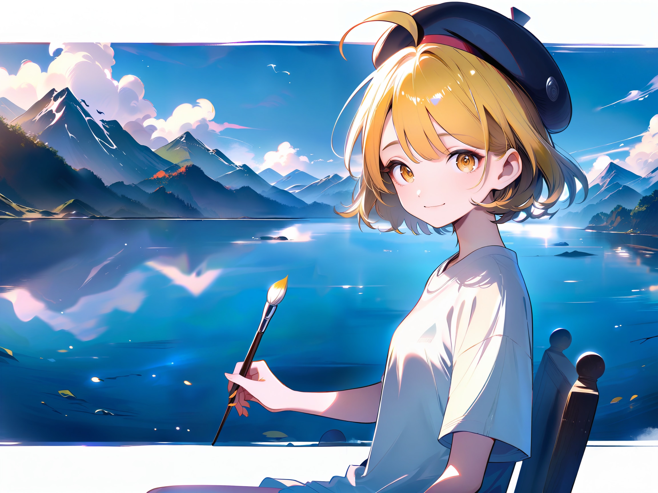 ベレー帽をかぶせてみましたが"ahoge"と相性が悪かったかもですね;