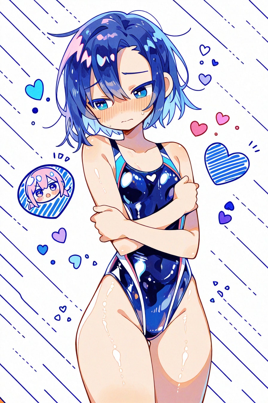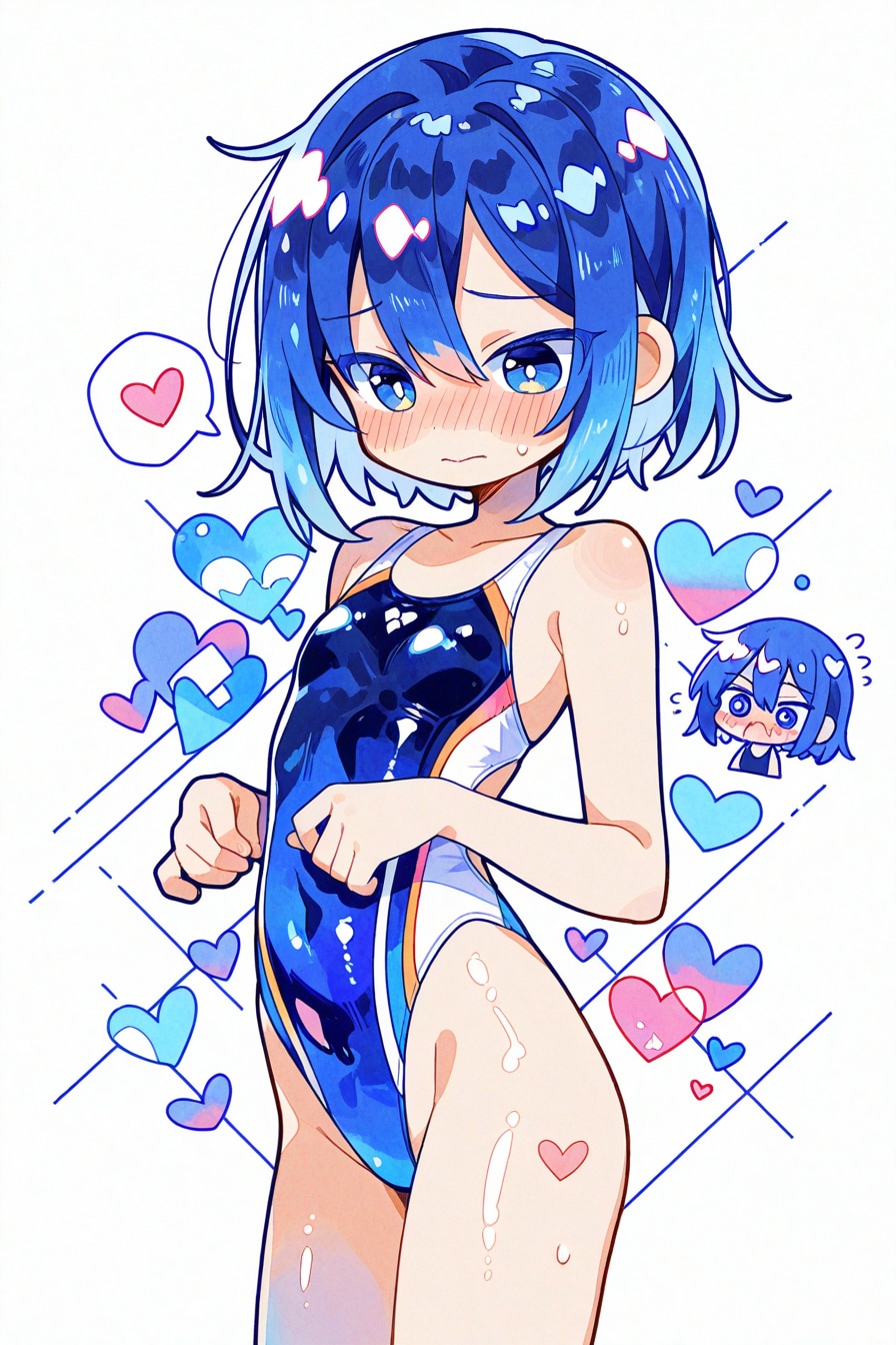 ハイレグ競泳水着っ娘♪大好き人間の私に、いつも良質すぎる💕競泳水着っ娘を見せてくださるkimugairuさんのうちの子「青木凛先生」のお誕生日をお祝いしてのイラストになります😊♪。