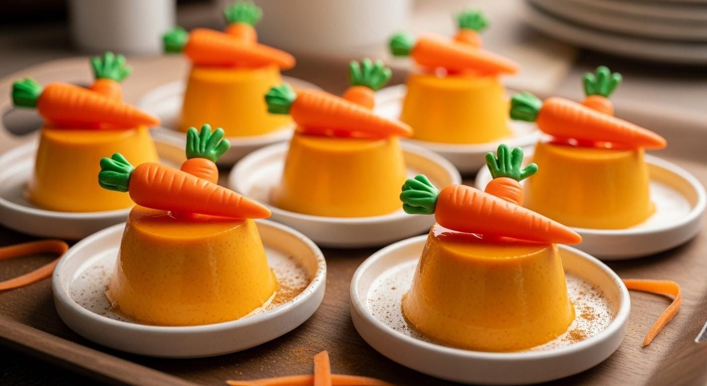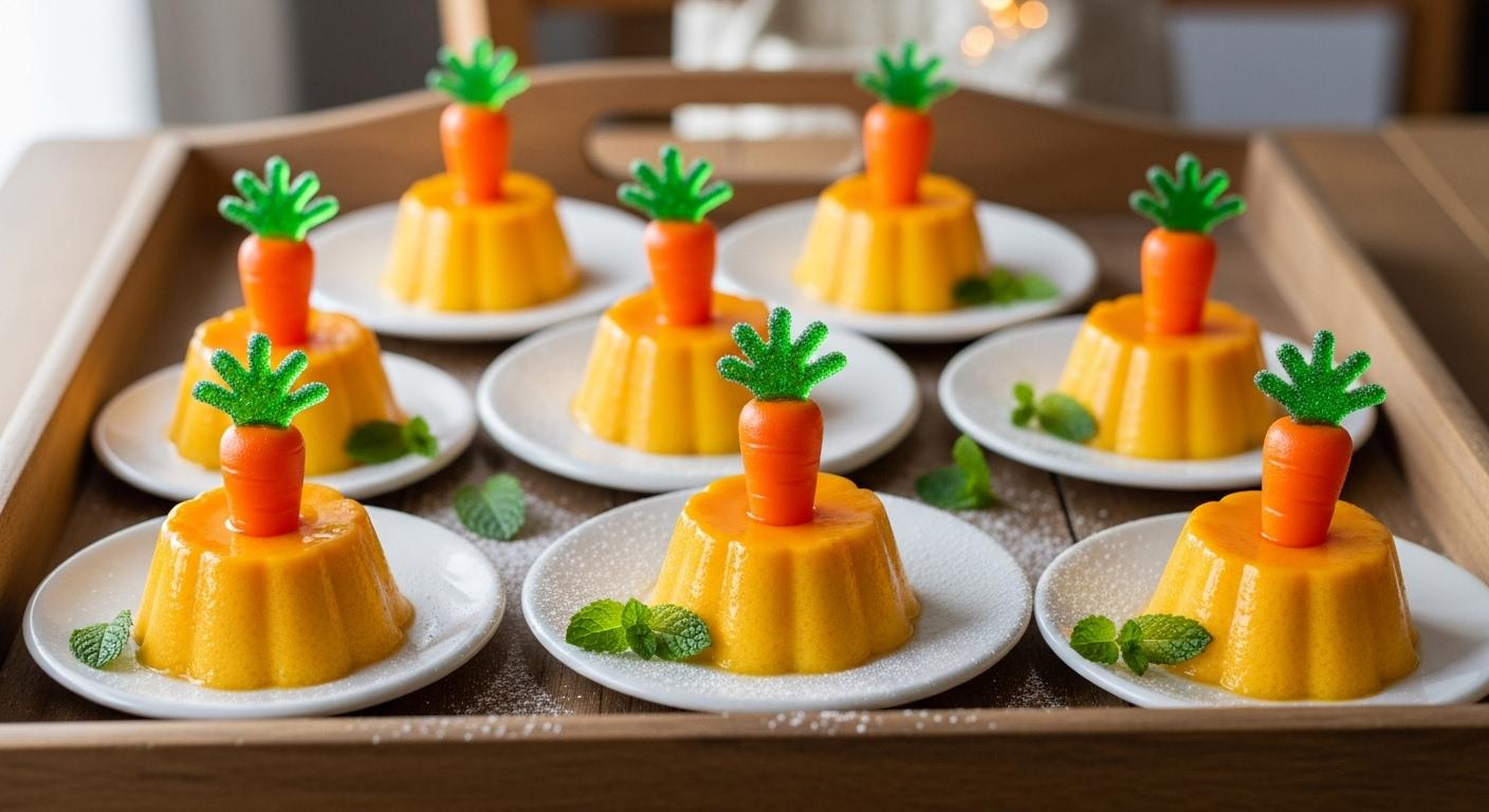 にんじん型のキャンディの刺さったにんじんプリンみたいな感じで